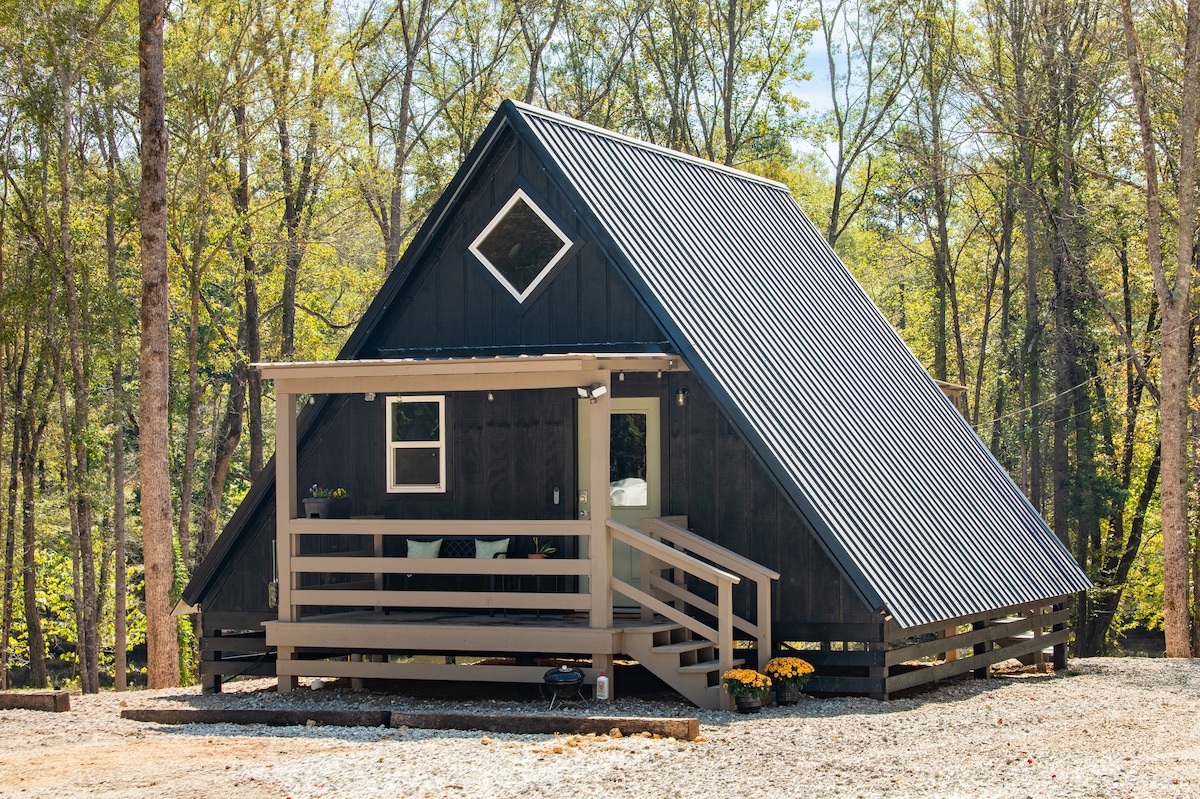 Case Rock Cabin - - OFF - GRID - hindi mo maa - access ang property na ito gamit ang iyong sasakyan. Dapat kang magparada sa pangunahing bahay at sumakay ng 1.25 milya papunta sa cabin sa isang UTV na pag - aari ng Case Rock na hinihimok ng isang miyembro ng kawani. - Luxury 400 sq.ft. sa Locust Fork River - pet - friendly -105 acre eco - retreat at goat farm - mga hiking trail - mula mismo sa I -65 30 min N ng BHM, AL - Ganap na hindi maa - access sa pamamagitan ng kotse - ganap na naka - stock - malaking deck na may 180º tanawin ng ilog - Sundan kami sa IG@caserockcabin - Off - grid na munting bahay na pakikipagsapalaran lang sa Alabama!