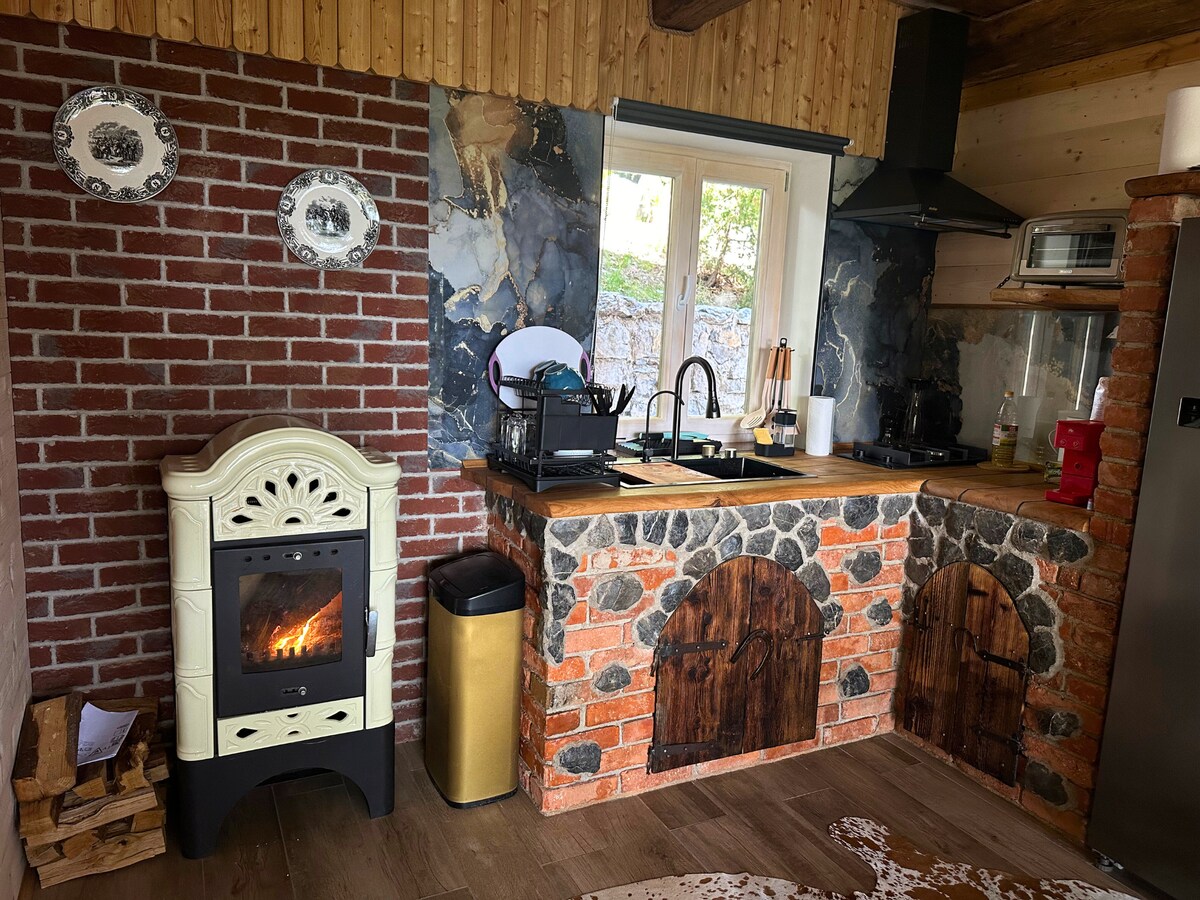 Gumising sa isang kubo na itinayo gamit ang kahoy mula sa aming kagubatan, sa isang payapang lokasyon. Sa umaga, mula sa iyong mainit na kama, maaari mong tingnan ang malalawak na salamin, at humanga sa kahanga - hangang tanawin ng Kamnik - Saavinja Alps. Sa kubo ay may isang double bed na may pull - out na dagdag na kama, maliit na kusina na may refrigerator, outdoor terrace na may deck chair. Ang bawat kubo ay may sariling banyo sa agarang paligid (15m -30m).