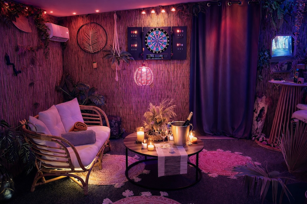 ✨ Tuklasin ang Mirage Tropical, isang pinong parenthesis sa mga bangko ng Loire 🌴. Mag‑spa, magpamasahe, mag‑relax sa eleganteng terrace, at mag‑libang sa kakaibang gubat. Maglaro ng darts, mag‑aperitif, o magrelaks sa natatanging kapaligiran. Sa gabi, magliliwanag ang kuwarto ng mga nakakabighaning kulay para sa isang magarbong at romantikong sandali💖. Dito, pinapaganda ng bawat detalye ang pamamalagi mo para magkaroon ng mga di-malilimutang alaala.🌴❤️❤️💕💕💕👄🫂❤️