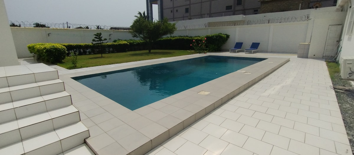 Détendez-vous dans ce logement calme et élégant.Cet hébergement est très idéal lorsque qu'on recherche un cadre pour se détendre et savourer la beauté de se retrouver dans un jardin au bord d'une piscine en famille ou entre amis. La plage sablonneuse de Lomé qui se situe à quelques mètres donne une autre dimension à cet hébergement. NB :LA VILLA SE TROUVE À BAGUIDA CÔTÉ PLAGE NON LOIN DU ROND POINT MONUMENT.