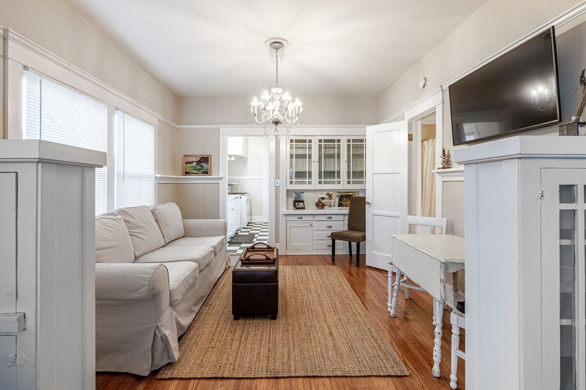 Maligayang pagdating sa The Daisy Suite - ang makasaysayang hiyas na matatagpuan sa pagitan ng karagatan at ng Arts District ng downtown Long Beach. Nag - aalok ang magandang renovated studio na ito ng open floor plan at mga tanawin ng marina. Pinag - isipang mabuti ang bawat kuwarto para matiyak na parang elegante, mataas, at totoo ang iyong pamamalagi sa panahon ng 1920s. May maigsing distansya ang condo mula sa Long Beach Convention Center, Pine Avenue, The Pike, at maraming bagay, restawran, at bar.
