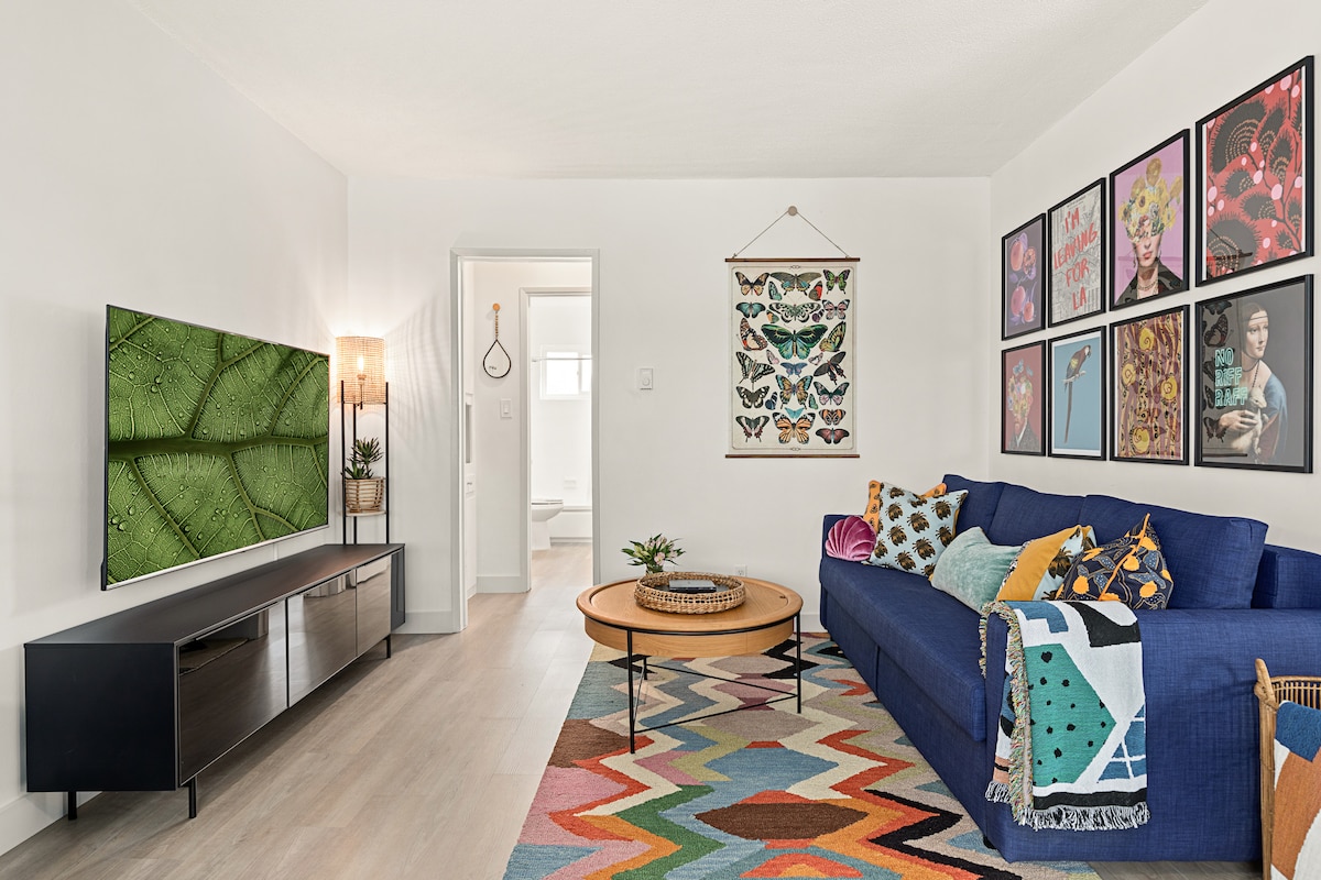 NRP23 -01221 Matatagpuan sa iba 't ibang at urban, kapitbahayan ng East Village Arts District. May walk score na 98/100, malapit ka sa ilan sa mga pinakamagagandang restawran, tindahan, at nightlife. Maglakad nang 10 minuto lang papunta sa downtown at 15 minuto papunta sa beach ng Alamitos. Ipinagmamalaki ang kumpletong kusina, mga kagamitan sa beach at mga komportableng memory foam bed, maingat na nilagyan ang tuluyang ito para lumampas sa iyong mga inaasahan. Sa pamamagitan ng mabilis na Wi - Fi, malalaking screen na smart TV, at nakatalagang workspace, madali kang makakonekta.