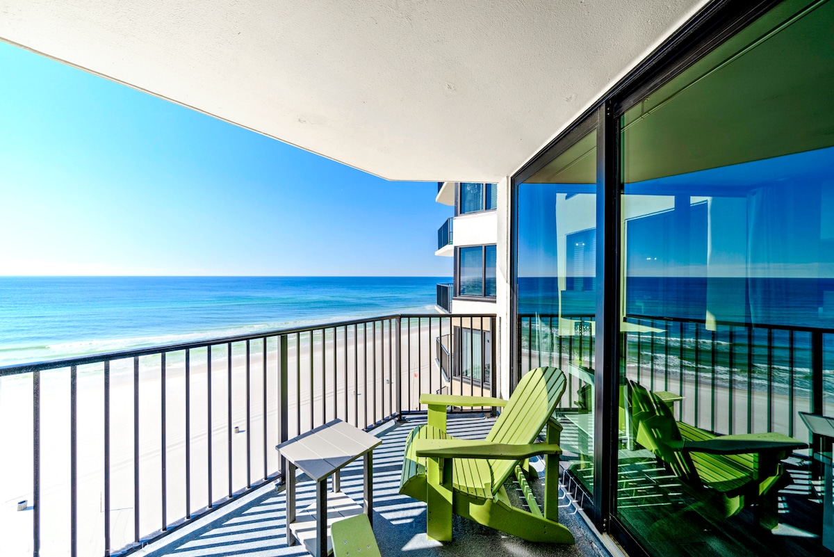 Nagsisimula ang Luxury Beachfront Living sa sandaling pumasok ka. Gumising sa mga walang harang na tanawin ng karagatan, humigop ng sariwang kape sa pribadong balkonahe at dumiretso sa buhangin sa loob ng ilang segundo. Bakit mahal kami ng mga bisita: • Maluwang na balkonahe na may nakakamanghang tanawin ng paglubog ng araw • Maluwang na king - size na higaan • Bunk para sa dagdag na bisita • Kusinang kumpleto sa kagamitan • On - site gym, 5 pool, 3 hot tub Lokasyon: Matatagpuan mismo sa baybayin, ilang minuto ka mula sa mga lokal na restawran, live na musika at atraksyon ng pamilya.