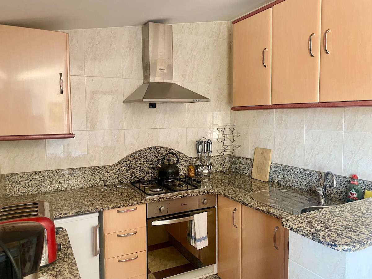 Mag - enjoy sa iyong pamamalagi sa medyo, may gitnang kinalalagyan na village house na ito sa Bedar village, maigsing lakad lang papunta sa lahat ng amenidad, tapa bar, art center, panaderya atbp. Nasa isang level lang ang maliwanag at kakaibang bahay na may mga hakbang papunta sa terrace sa labas na may mga kamangha - manghang tanawin ng dagat. May dalawang double bedroom , ang isa ay may balkonahe ng Juliet. Moderno at bagong lapat ang kusina at mayroon ding dining area ang sala. Hindi rin problema ang paradahan sa paradahan para sa bahay na ito lamang!. Isang kamangha - manghang property.
