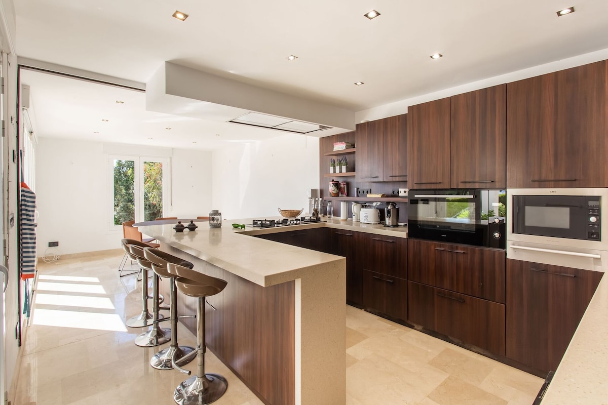 Marangyang villa na kayang tumanggap ng 4 na tao, 2 kuwarto (may 1 higaang 180cm ang isa at may 1 higaang 150cm ang isa pa), 2 banyo (may hot tub ang isa), kusina, sala na may fireplace, at silid-kainan. May kumpletong kagamitan at muwebles na bahay, may heated floor sa taglamig at refreshing sa tag-araw, oven, dishwasher, washing machine, wifi, tv... Ang parking area, barbecue area at moruno oven, hardin, saltwater pool, ay lahat ay ganap na pribado. LAHAT NG KAILANGAN MO!