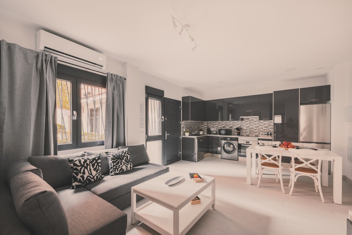 Bago at kumpletong kumpletong apartment para sa 6 na bisita. Mainam para sa mga pamilya, kaibigan o business trip. Mayroon itong 2 silid - tulugan (ang isa ay may double bed at ang isa ay may dalawang single bed), isang sofa bed, isang modernong banyo na may shower, air conditioning at heating. Kumpletong kusina na may washer - dryer, dishwasher, oven, microwave at coffee maker. Nag - aalok din ito ng high - speed na Wi - Fi at Smart TV. Lahat ng kailangan mo para sa komportable at kaaya - ayang pamamalagi!