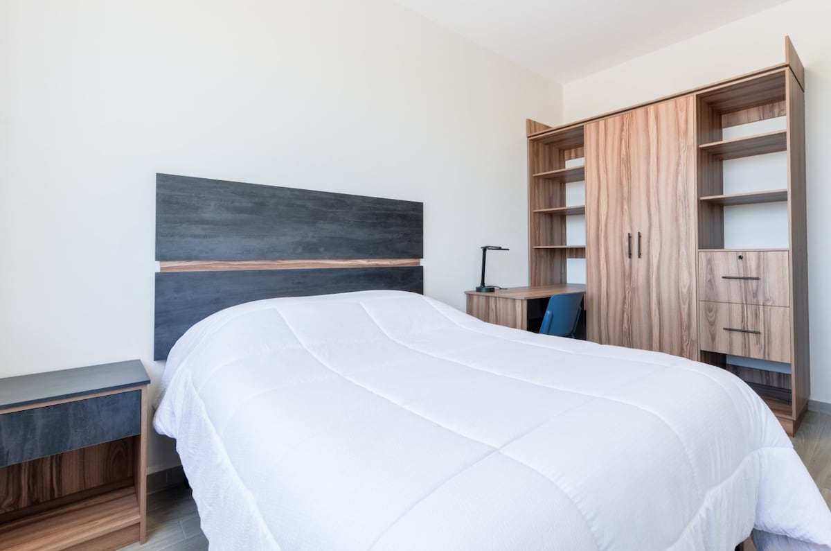 Mini apartment sa isang pribilehiyo at ligtas na lugar na may mahusay na lokasyon sa San Nicolás. Paliparan sa 17 min, mabilis na access sa mga shopping center tulad ng Paseo de la Fe at Citadel 3 minutong lakad at restaurant lamang. Downtown Monterrey 15 minuto. Magrelaks sa tahimik, komportable at eleganteng lugar na ito, makukuha mo ang kailangan mo para sa komportable at produktibong pamamalagi. Paradahan sa labas, linear park na 100 metro ang layo para sa mga pisikal na aktibidad. Kuwartong may air conditioning, Netflix. Jn3:16.