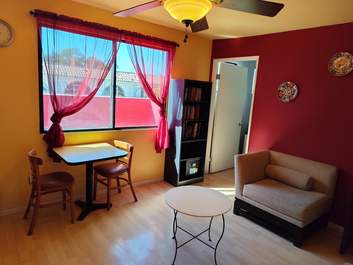 Masiyahan sa kaginhawaan ng Bago, tahimik at napakahalagang tuluyan na ito. Magandang tanawin at magandang lokasyon na 5 minuto lang ang layo mula sa hangganan ng Mexico - USA. Ilang kalye lang mula sa masiglang Av.Revolution. Ilang hakbang lang ang layo mula sa mga restawran, nightlife at mga medikal na tanggapan. Mayroon itong 1 silid - tulugan (1 Queen bed + inflatable mattress), 1 TV 50" na may mga app: HBO, Netflix, MLB. Mga kagamitan sa kusina, washer, dryer at bakal para sa mga damit, hair dryer. Libreng paradahan na may 24/7 na seguridad