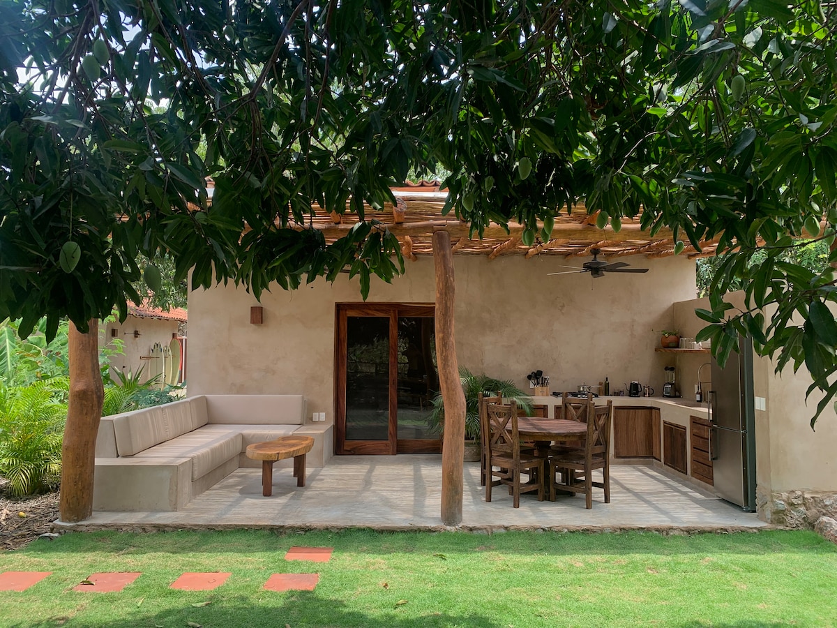 Ang CASA NU ay isang perpektong santuwaryo para sa mga mag - asawa, ngunit maaari rin itong ibahagi sa pamilya at mga kaibigan. Matatagpuan 150 metro lamang mula sa pasukan hanggang sa surf break. Hakbang sa isang larangan ng enchantment, meticulously dinisenyo at nilagyan upang lumikha ng indelible alaala. Ito ay isang komportableng lugar para magluto, magpahinga o magtrabaho, at mag - enjoy sa lilim ng mga sinaunang puno ng mangga sa pribadong patyo sa labas. Ang lugar na ito ay para sa mga taong pinahahalagahan ang pinakamahusay sa ginhawa, pansin sa detalye, at isang pinong kahulugan ng disenyo.