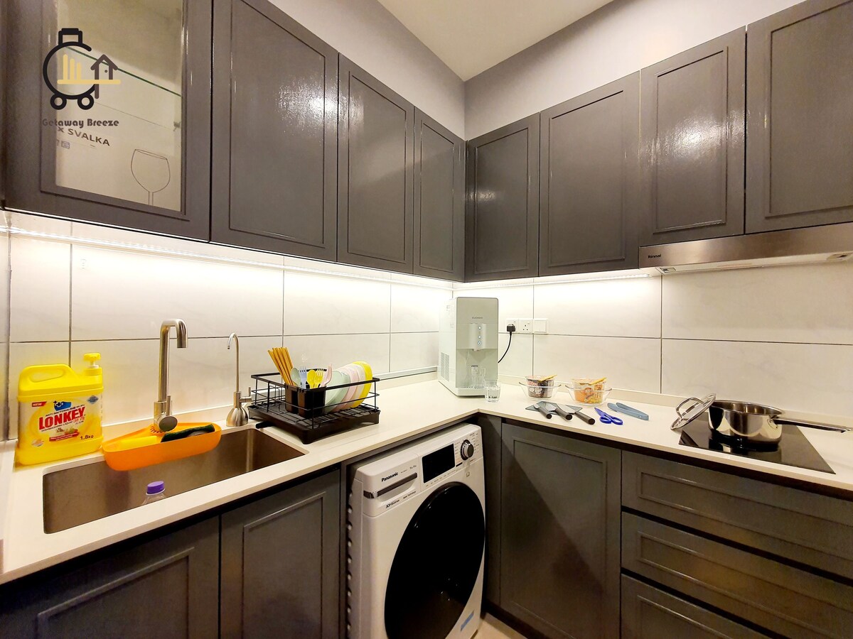 Chic at sopistikadong unit, na makikita sa pangunahing lokasyon malapit sa gitna ng Bukit Bintang, ang pinakamainit na shopping spot ng Kuala Lumpur. 4 na minutong lakad lang papunta sa Starhill Gallery, 5 -8 minuto para marating ang pangunahing pasukan ng Pavilion. 1 minutong distansya sa pagmamaneho papunta sa pangunahing kalye ng Bukit Bintang Para sa mga bisitang gustong mag - explore sa kabila ng KL, MRT at Monorail Bukit Bintang, 10 -15 minutong lakad lang ang layo!