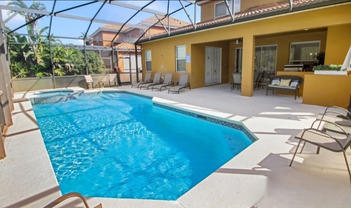 Esta hermosa casa de 5 habitaciones y 3 baños equipada completamente para un espléndido disfrute. Tiene una excelente ubicación cerca de una variedad de restauraste, comidas rápidas, centros comerciales, supermercado, a tan solo 10 millas del fabuloso parque de Disney Word y 18 millas del parque de Universal studios. tiene piscina privada con calefacción, cocina completa, nevera para vinos, parrillera, sala de juego y su sofá cama. Tiene un balcón donde podrás relajarte y leer un libro.