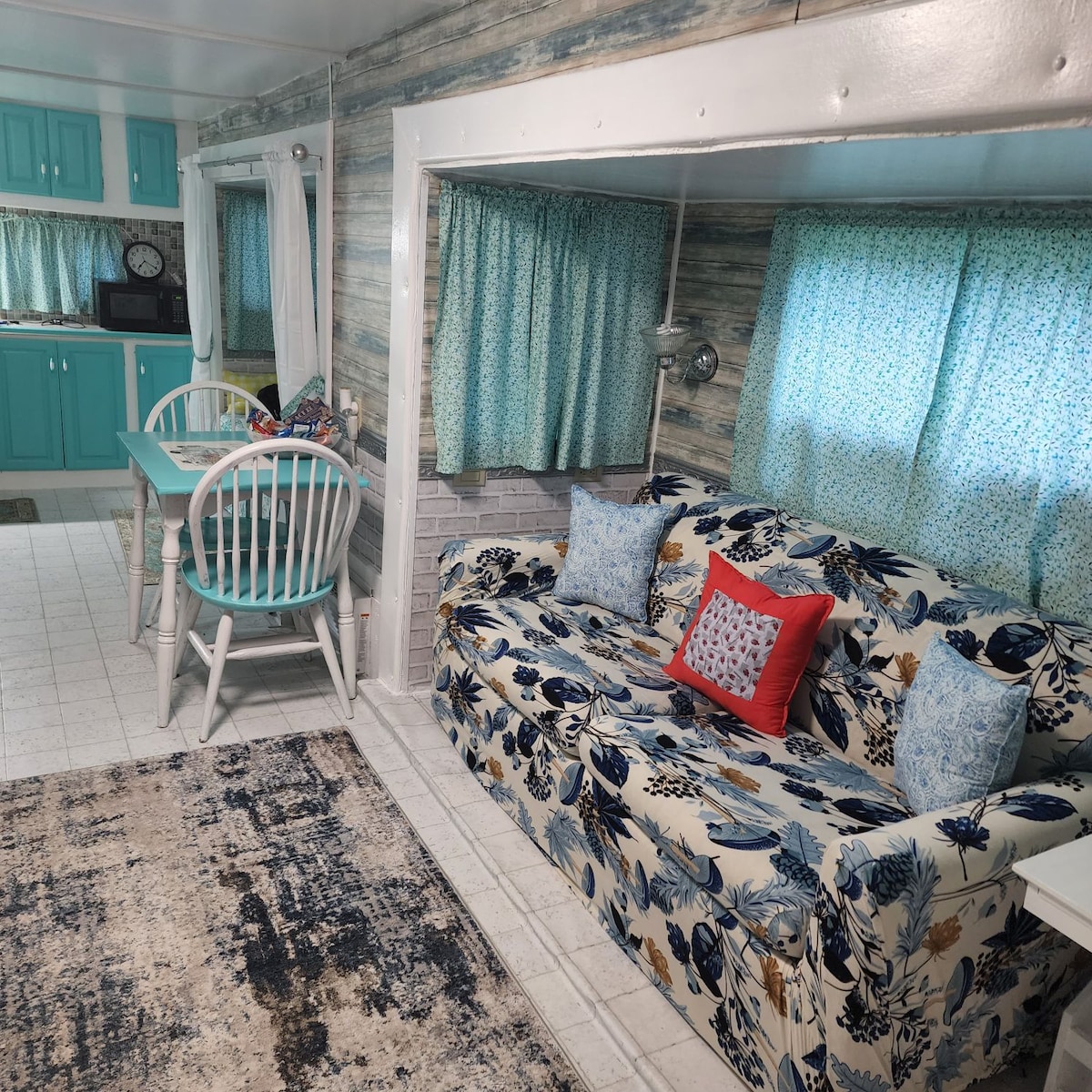 Muling kumonekta sa kalikasan sa hindi malilimutang bakasyunang ito. Ang BLUE PELICAN ay isang ganap na na-remodel na 5th wheel camper na may mga kakaibang katangian dahil sa edad nito. Natutulog 5. Pribadong beranda na may upuan at kainan sa labas. Tandaan na ang bathtub/shower at toilet ay karaniwang camper. Nasa 5 acreas kami na may mga kakahuyan, mga puno ng oak na natatakpan ng lumot at maraming kalikasan. Tahimik na setting pero 2 milya lang ang layo sa I 20. Samahan kaming mag - camp nang walang abala sa pag - drag ng camper.