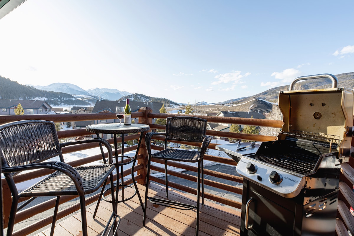 Our 2 bedroom, 2 bath "mountain escape" condo has panoramic glass patio doors with an unobstructed view looking out over Lake Dillon and the surrounding mountains. You can even see Dillon Marina from the patio, with sailboats docked all summer long. With a recently remodeled kitchen, cozy couches near our gas fireplace, table seating for 6 and breakfast bar seating for 3. You're welcome to use our assigned garage space, an additional parking spot and have in-unit ski storage.