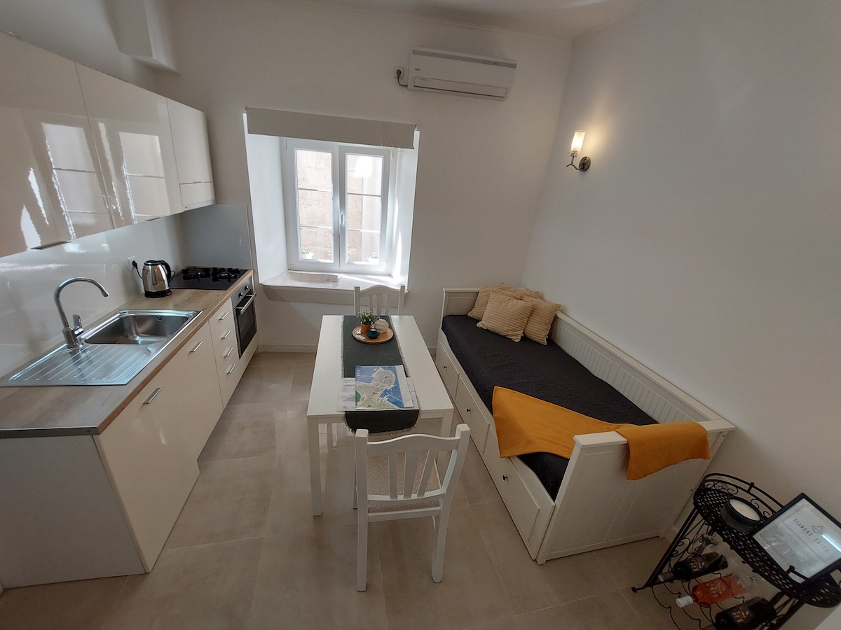 MATULOG SA PALASYO NG ISMAELLI MULA SA IKA -15 SIGLO Luxury, fully furnished 2 - bedroom loft sa isang natatanging 600 taong gulang na Ismaelli Palace (UNESCO World Heritage) sa gitna ng lumang bayan ng Korcula. Ilang hakbang lang ang layo mula sa St. Marc Cathedral, nag - aalok ang duplex loft na ito ng moderno at maluwang na sala na may malaking mesa ng kainan, kumpletong kusina, 2 silid - tulugan, kumpletong banyo, at air conditioning sa bawat kuwarto. Ang loft ay perpekto para sa mga digital nomad para sa mas matatagal na pamamalagi.
