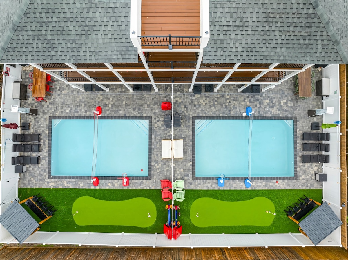 Slps 22! 2 Bahay*2 Pool-Golf-Grill-Mga Laro*Malapit sa Beach!