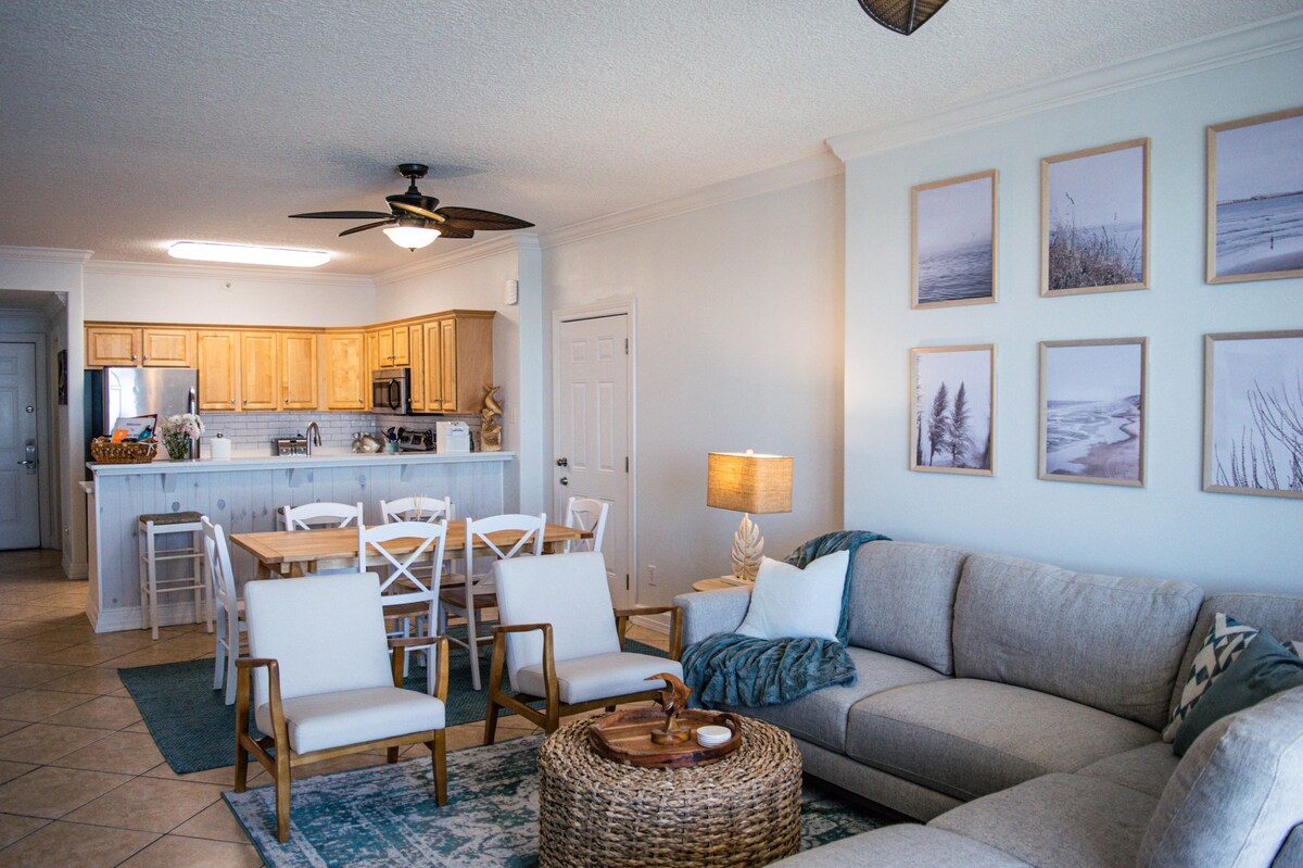 Mga Highlight na Magugustuhan Mo: • Condo sa tabing‑Gulf na may malalawak na tanawin ng baybayin • Malaking pribadong balkonahe para sa kainan at pagpapahinga • May kasamang libreng beach chair service (2 lounger + payong, Marso–Oktubre) • Kayang magpatulog ng 6: dalawang kuwartong may king size bed at kuwartong may dalawang bunk bed • Dalawang kumpletong banyo para sa kaginhawahan at privacy • Mga Smart TV sa lahat ng kuwarto at malaking Smart TV sa sala • Kusinang kumpleto sa kagamitan na may coffee/tea bar at maraming supply • Washer/dryer sa loob ng unit na may mga gamit sa paglalaba • Mga amenidad ng resort: