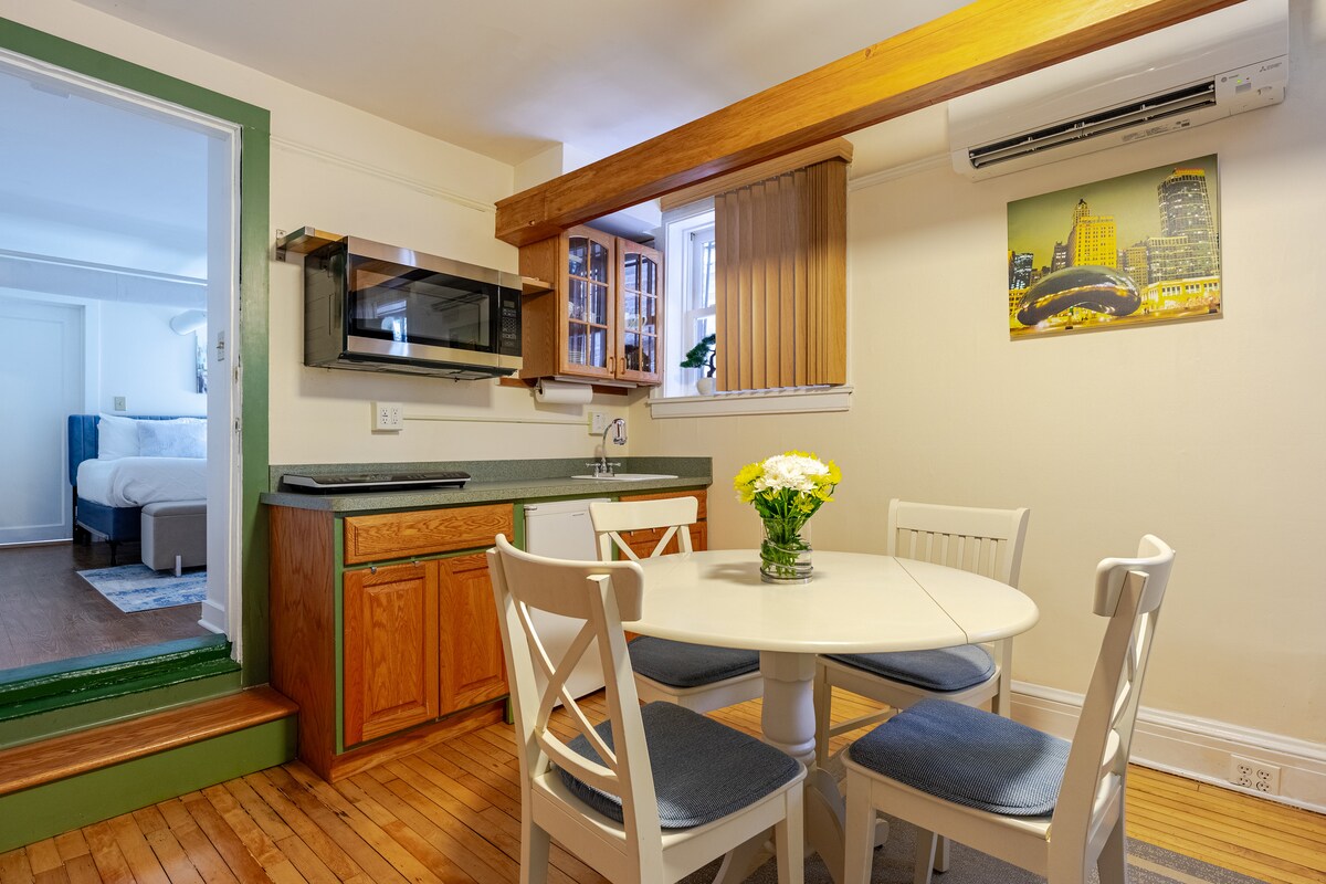 Mag-enjoy sa malaking garden suite na may 2 kuwarto sa East Rogers Park. Malawak ang layout ng aming "Urban Den" at may kuwarto para magrelaks—perpekto para hindi maging "parang naipit sa bahay" ang pakiramdam. Handa sa Taglamig at Maginhawa: Pangarap ng Biyahero: 2 bloke ang layo sa Red Line, kaya mas mabilis ang paglalakad sa malamig na panahon. Maaliwalas at tahimik: Natural na insulated at pribado. Prime Access: 2 bloke papunta sa Loyola; 4 na bloke papunta sa Lake. Mga klasikong alindog ng Chicago na malapit sa lokal na kapehan at sakayan. Mainam para sa mga pagbisita sa unibersidad o isang maluwang na bakasyon sa tabi ng lawa!