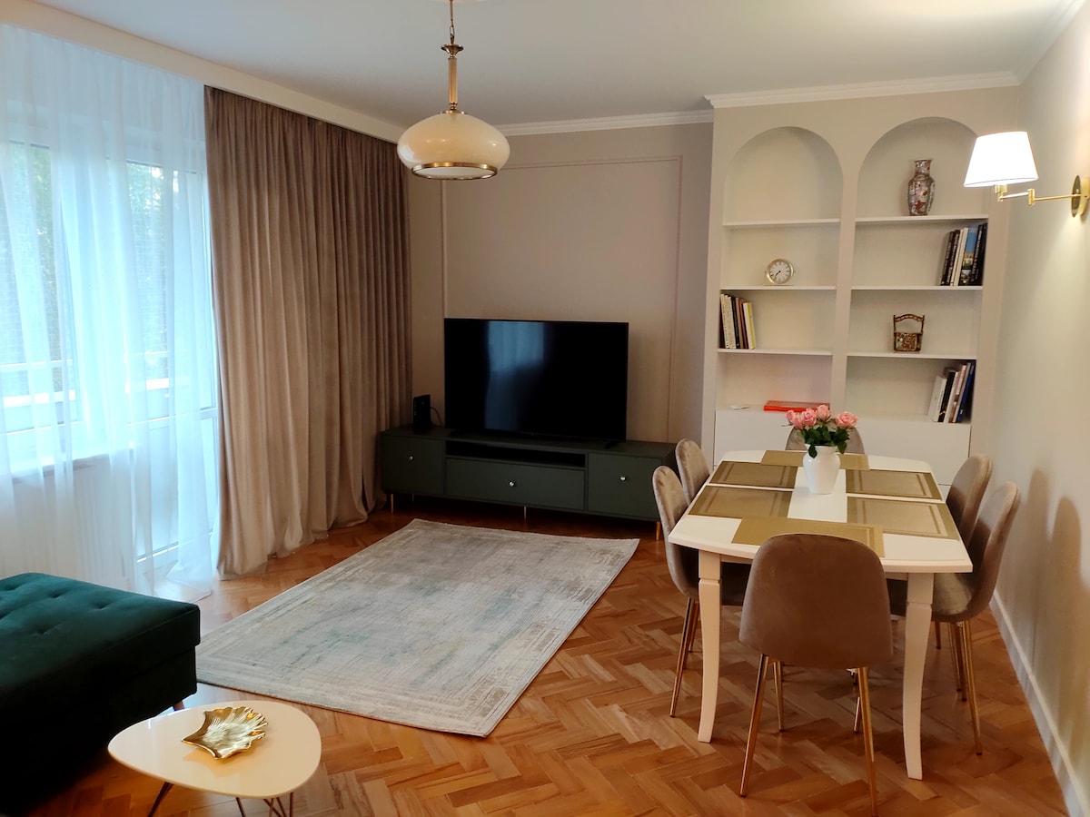 Isang marangyang lugar kung saan malapit ito sa lahat ng mahahalagang atraksyon. Isang 37m studio apartment na inirerekomenda para sa 3 matatanda o isang pamilya na may dalawang bata, ang studio ay matatagpuan sa ika -4 na palapag ng isang bago at modernong gusali na may elevator. Available ang mga paradahan sa ilalim ng lupa nang walang karagdagang gastos, kailangan lang ng maagang booking dahil sa limitadong bilang ng mga lugar.