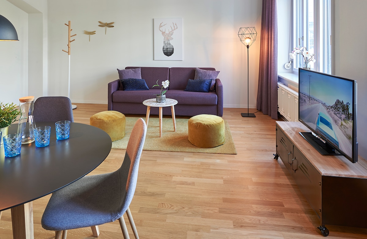 Bago, inayos na 3 - room apartment sa buhay na buhay na Neustadt quarter na may shopping at nightlife at nasa maigsing distansya papunta sa istasyon ng tren at lahat ng pangunahing atraksyon. Maliwanag, maluwag, moderno at naka – istilong – ito ang aming mga bagong apartment. Ang mga apartment ay pinangangasiwaan ng Hotel Central Lucerne, ang check in ay 150m para lakarin. Ang minimum na pamamalagi ay 3 gabi. Kapag hiniling, maaaring i - book ang almusal.