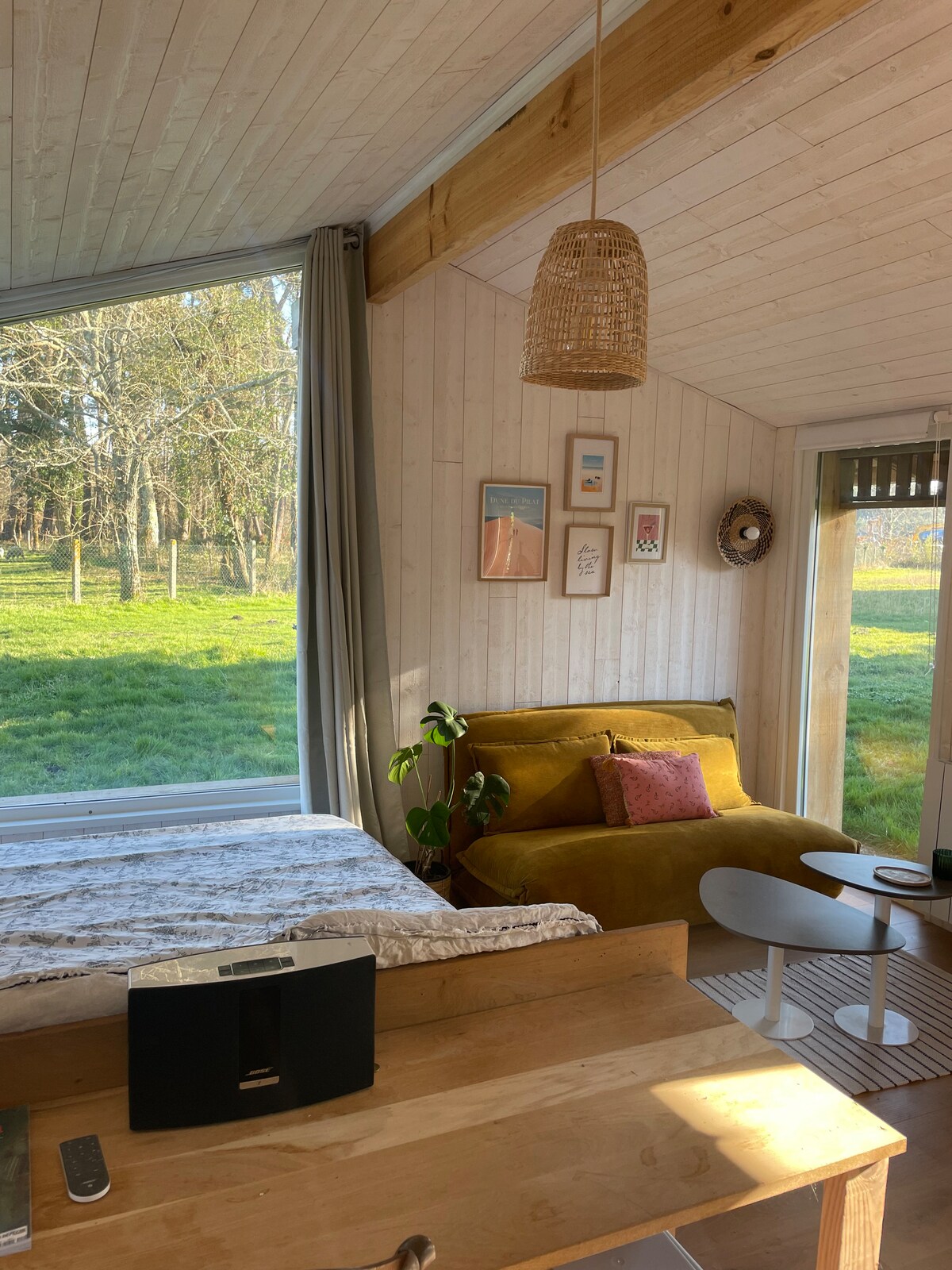 Niché sous les chênes et au calme nous vous invitons à découvrir notre charmant studio neuf de 40m2, idéalement situé entre Arcachon et le Cap Ferret. Ce studio, à la fois spacieux et confortable, est équipé d’une cuisine moderne, d’une climatisation réversible et d'un espace de travail équipé d’une connexion fibre. Une place de parking est à votre disposition avec possibilité de recharger votre véhicule électrique.