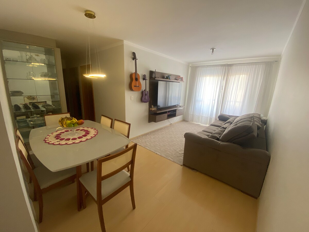 Inihahandog namin ang komportableng one - bedroom flat na ito, na tumatanggap ng hanggang tatlong bisita, na perpekto para sa mga naghahanap ng kaginhawaan at pagiging praktikal sa isa sa mga pinakamagagandang lokasyon sa Jardim Paraíso. - *Kitchen Equipada *: Kumpleto, handa na para sa pang - araw - araw na paggamit. - * Functional Room *: Maluwang, idinisenyo para i - optimize ang kaginhawaan. - *Silid - tulugan*; idinisenyo para magpahinga. Matatagpuan sa Jardim Paraíso, ilang minuto lang ang layo ng apartment mula sa mga restawran, panaderya, at madaling mapupuntahan ang mga pangunahing pasyalan sa lungsod.