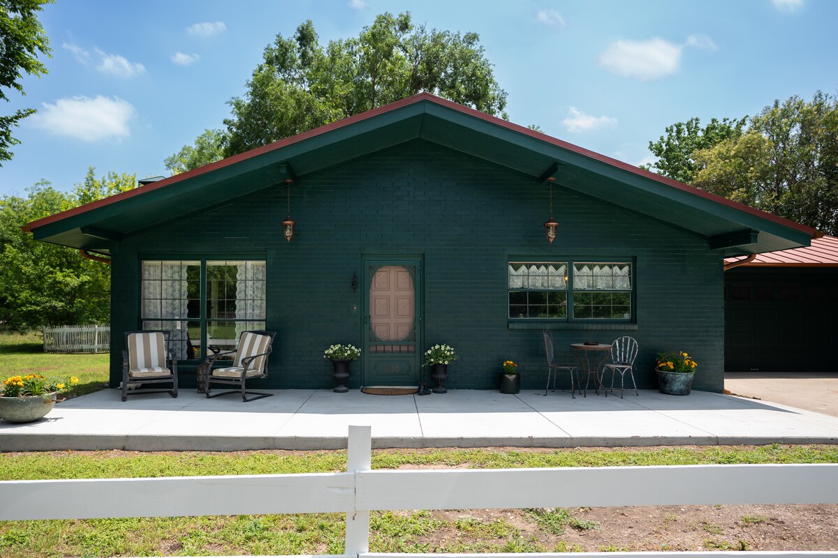 We only have one unit here, so come be our exclusive guests. Drive down our road through trees and cattle fields and stay on the edge of the woods in a pocket of privacy. Our property is full of mature elm and oak trees. We have 7 acres of park like trails cut and mowed throughout the property. We protect our wildlife habitats so wild turkey, wild hogs, whitetail deer, raccoons, armadillos, hummingbirds, Robins, egrets, painted buntings, and red tail and red shoulder hawks are on the property.