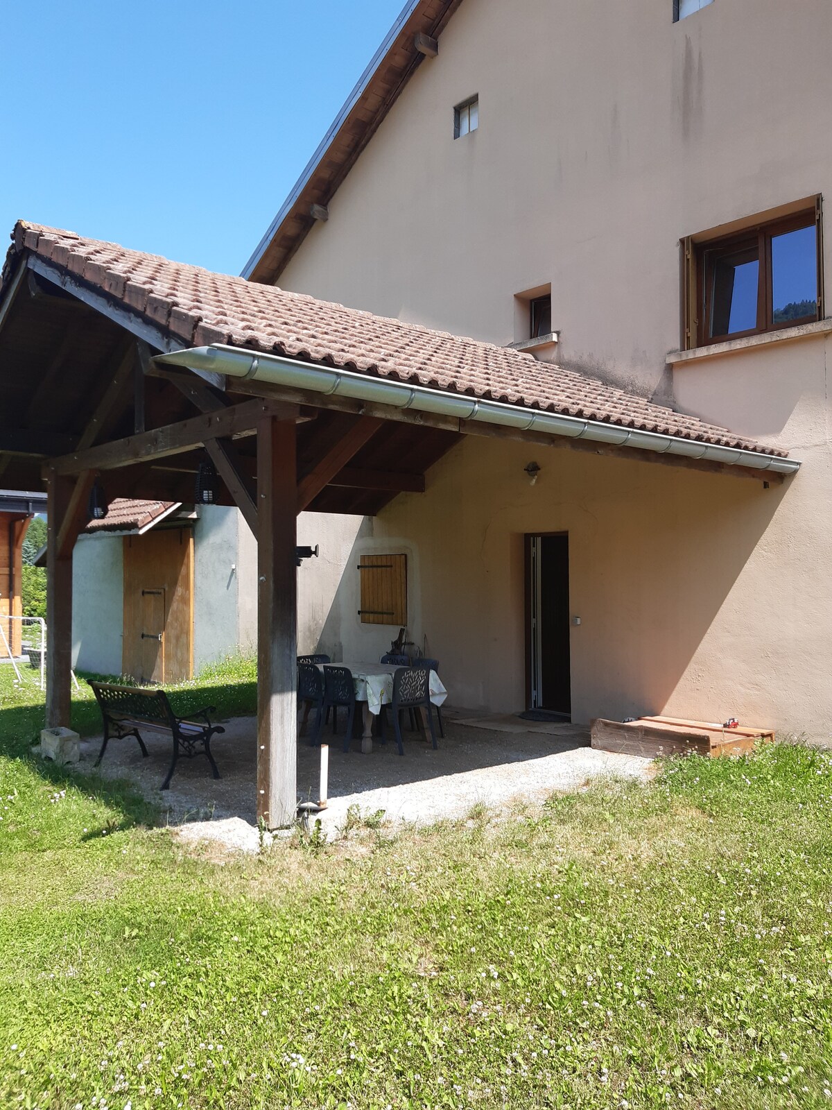 Ang aming maliit na independiyenteng apartment, kumpleto sa kagamitan (silid - tulugan, kusina, banyo at banyo), ay perpekto para sa mga mag - asawa na may posibleng maliliit na bata. Malapit ang maraming aktibidad na may kaugnayan sa bundok o Lake Geneva. Maraming ski resort (cross - country o alpine) ang nasa malapit (sa pagitan ng 20 minuto at 40 minuto sa pamamagitan ng kotse). Maraming paglalakad ang naa - access mula sa bahay. Dalawang minutong lakad ang layo, masisiyahan ka sa napakagandang tanawin ng lawa at ng Jura.