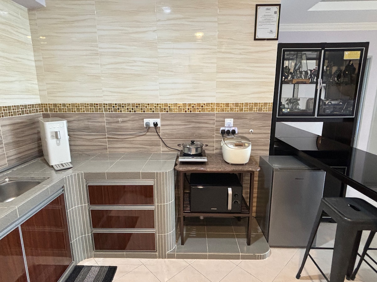 *Abot - kaya pero kaginhawaan *5min papunta sa Jetty Marina, Jetty Lumut, Lumut Town, Aeon Manjung, Pantai Hospital, *5min papuntang Teluk Batik *Maglakad papunta sa dobi, mga restawran, Familymart, ZUS Coffee at DIY. *10min papunta sa Ospital Seri Manjung *15min Teluk Rubiah, Lumut Port