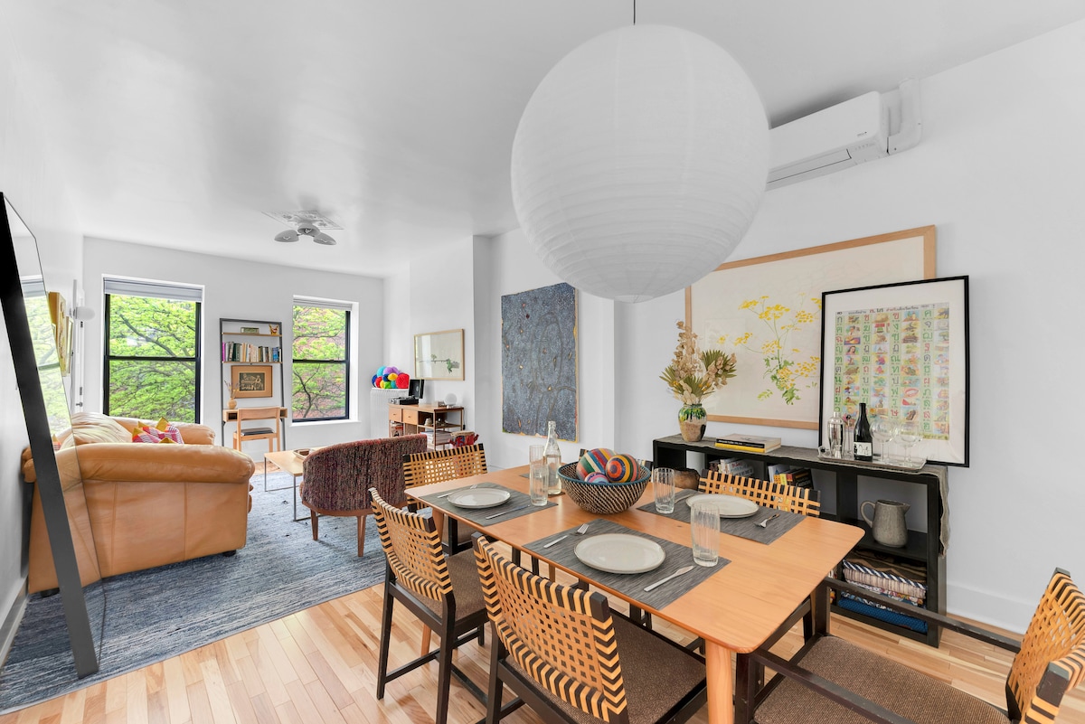 Maligayang pagdating sa iyong marangyang, maingat na idinisenyong pribado, 700 - square - foot na guest suite sa isang makasaysayang Brooklyn brownstone. Tulad ng itinampok sa "59 Pinakamahusay na Pamamalagi sa Airbnb sa buong US 2023" ng Architectural Digest, naaabot ng tuluyan ang perpektong balanse sa pagitan ng estilo at kaginhawaan. Idinisenyo ng kilalang interior designer na si Jarret Yoshida, nagtatampok ang suite ng pinapangasiwaang halo ng mga kontemporaryong, mid - century, vintage, at antigong muwebles, na lumilikha ng natatangi at masiglang kapaligiran.