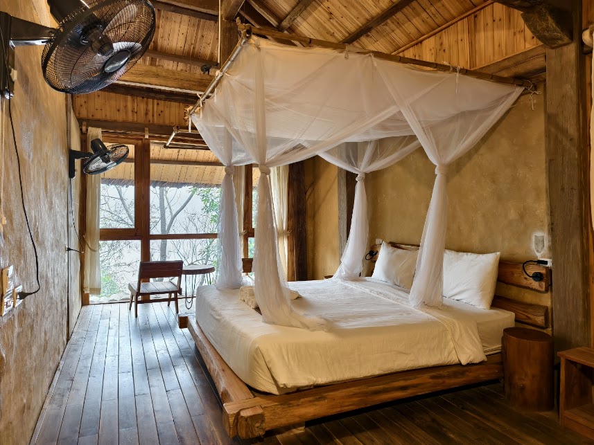 Trải nghiệm khung cảnh ngoạn mục của núi rừng Pu Luông mang đến trải nghiệm văn hóa và tự nhiên độc đáo. Căn bungalow 2 tầng 30m² cho 4 khách. Nằm tại trung tâm của Pu Luông Thư giãn với bữa sáng, 2 giường cỡ queen Phòng tắm có vòi sen đứng, nhà vệ sinh hiện đại, nước nóng/lạnh, máy sấy tóc, khăn tắm, bàn chải tóc và đồ vệ sinh cá nhân thân thiện với môi trường, mang đến sự thoải mái thanh bình giữa thiên nhiên.