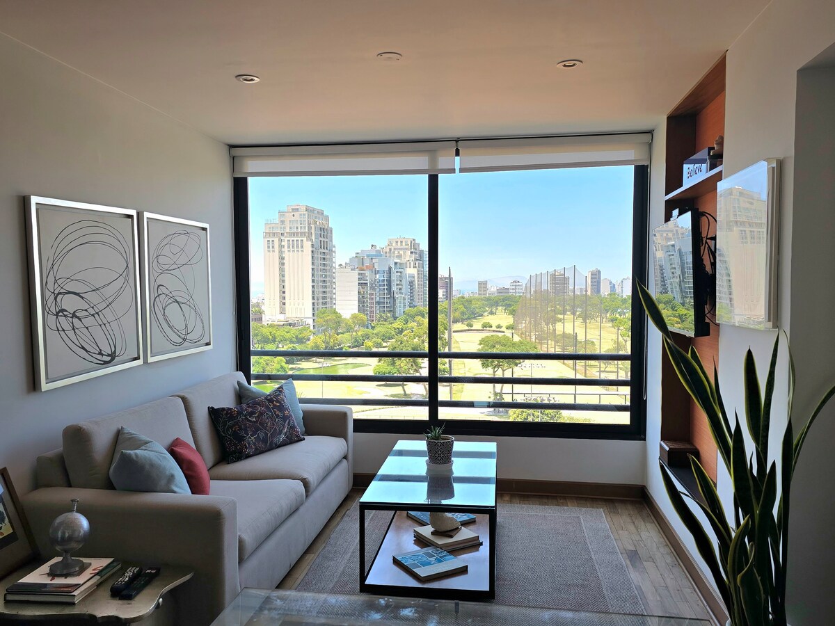 Tingnan ang mga player na nag - aalaga sa magandang golf course ng Lima mula sa sala ng kontemporaryong apartment na ito. Para sa mga kaakit - akit na tanawin ng ibang uri, tingnan ang abstract art ni Juan Puente, o panoorin ang 43" smart TV mula sa kaginhawaan ng silid - tulugan. At may access din sa high speed internet Wi - Fi. Nilagyan ng Apartment (maliit na kusina, sala, master bedroom na may double bed at banyo sa loob ng kuwarto). Ang appartmente ay may kamangha - manghang tanawin habang naglalakad ka at matutuwa ka sa isang malaking berdeng lugar (Lima Golf Club) mula sa sala at master room. May TV ang parehong kuwarto at sala. Nilagyan ng apartment (maliit na kusina, sala, sala, silid - kainan, silid - kainan, master bedroom, master bedroom na may double bed at banyo Ang apartment ay may nakamamanghang tanawin mula sa sandaling pumasok ka at matutuwa ka mula sa sala at sa kuwartong may malaking berdeng lugar (Lima Golf Club). Parehong may TV ang kuwarto at sala. Malugod na gagabayan ang mga bisita at sasagutin ang mga tanong at rekisito para maging confortable ang pamamalagi mo sa Lima hangga 't maaari. Ikalulugod kong gabayan ang bisita at dumalo sa mga tanong at rekisito para maging komportable hangga 't maaari ang iyong pamamalagi sa Lima. Ang apartment ay nasa San Isidro, na itinuturing na pinaka - eksklusibo at ligtas na lugar ng Lima. Limang bloke lang ito mula sa Miraflores, malapit sa mga pangunahing lugar sa pananalapi, mga eksklusibong tindahan, pinakamagagandang restawran, bar, sinehan, at sinehan. Ang pinakamadaling paraan para makapaglibot sa Lima ay sa pamamagitan ng Taxi. Ang App Uber at Easytaxi ay gumagana nang perpekto sa Lima. Hindi ko iminumungkahi ang paggamit ng pampublikong transportasyon maliban kung lumilipat ka nang malapit. Sa paligid ng appartment ay may napakagandang mga restawran, bar, sinehan, at supermarket sa loob ng 10 minutong distansya. Ang pinakamadaling paraan para makapaglibot sa Lima ay sa pamamagitan ng Taxi. Ang Uber at Easytaxi App ay gumagana nang perpekto. Hindi ko iminumungkahi ang paggamit ng pampublikong transportasyon maliban kung ito ay upang makakuha ng paligid sa maikling distansya. Wala pang 10 minutong lakad ang layo sa apartment, may mga napakagandang restaurant, bar, sinehan, at supermarket. Sa Lima ay may mabigat na trapiko sa oras ng pagmamadali 8:00 - 10:00 at 17:30 - 20:00, inirerekomenda na gamitin ang Waze o (MGA SENSITIBONG NILALAMAN NA NAKATAGO) mga mapa upang makarating sa oras sa patutunguhan. Sa dayap ay may mabigat na trapiko sa mga oras ng peak 8:00 - 10:00 at mula 17:30 - 20:00 inirerekomenda na gamitin ang Waze o (MGA SENSITIBONG NILALAMAN NA NAKATAGO) mga mapa upang makapunta sa iyong patutunguhan sa oras.