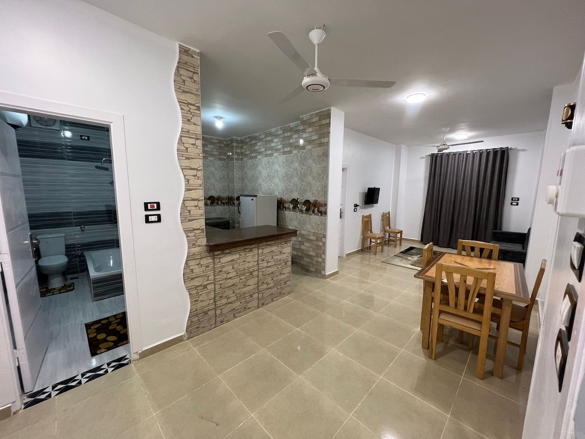 Walang duda na ito ANG PINAKAMAGANDANG LOKASYON na maaari mong hilingin kapag bumibisita sa Luxor. Mayroon kang pribadong apartment para sa iyo, na may libreng walang limitasyong Wi - Fi. Layunin namin ang iyong kaginhawaan. Naghahanap ka ba ng tahimik, maganda at malinis na lugar na matutulugan nang may magandang presyo, ito ang tamang apartment para sa iyo. Nag - aalok kami ng sariling pag - check in at pag - check out sa araw at gabi gamit ang aming look box sa pinto. Ang aming Harmony House ay ligtas na may pitong panseguridad na camera, nangangahulugan ito na ikaw ay 100% na ligtas sa amin.