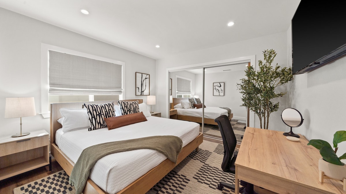 Masiyahan sa nakamamanghang modernong 1 bed/1 bath luxury apartment na ito na matatagpuan sa gitna ng DTLA. Nag - aalok ang naka - istilong apartment na ito ng mga nakamamanghang tanawin ng lungsod, sa unit washer/dryer, 4K TV, libreng paradahan, libreng kape, at marami pang amenidad sa loob ng complex. Matatagpuan 1 milya lang ang layo mula sa Crypto Arena, LA Live, at marami pang ibang restawran at atraksyon. 7 milya ang layo mula sa Universal Studios. Kabilang sa mga karagdagang amenidad ang: - Gym - Pool - LIBRENG PARADAHAN Perpekto para sa mga mag - asawa at maliliit na pamilya!