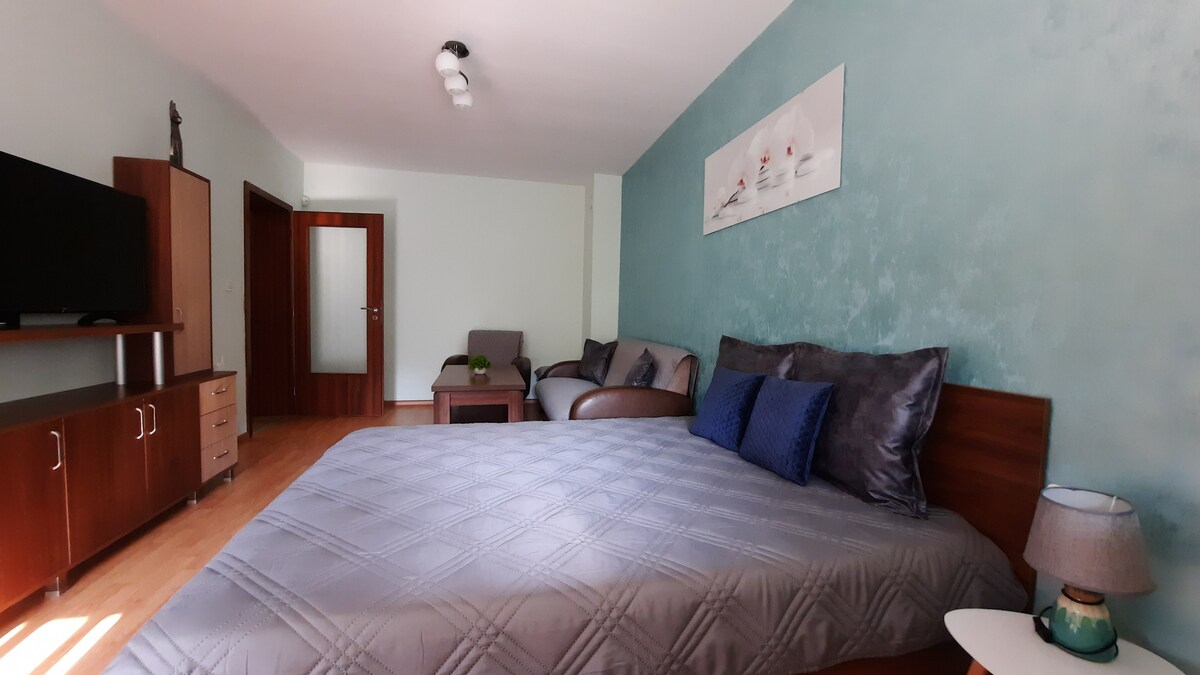 Апартамент Релакс-Център,е подходящ за всички ,които обичат лукса и комфорта.Има собствено паркомясто и всичко,необходимо за краткосрочен или дългосрочен престой!Апартаментът е в нова кооперация с контролиран достъп!Има голяма тераса !Климатизираните стаи са с високи легла и много удобни матраци! Завивките на "Роксима дриймс" само допълват усещането за релакс! Плътните завеси ще ви помогнат истински да си починете и да се събудите заредени с енергия!