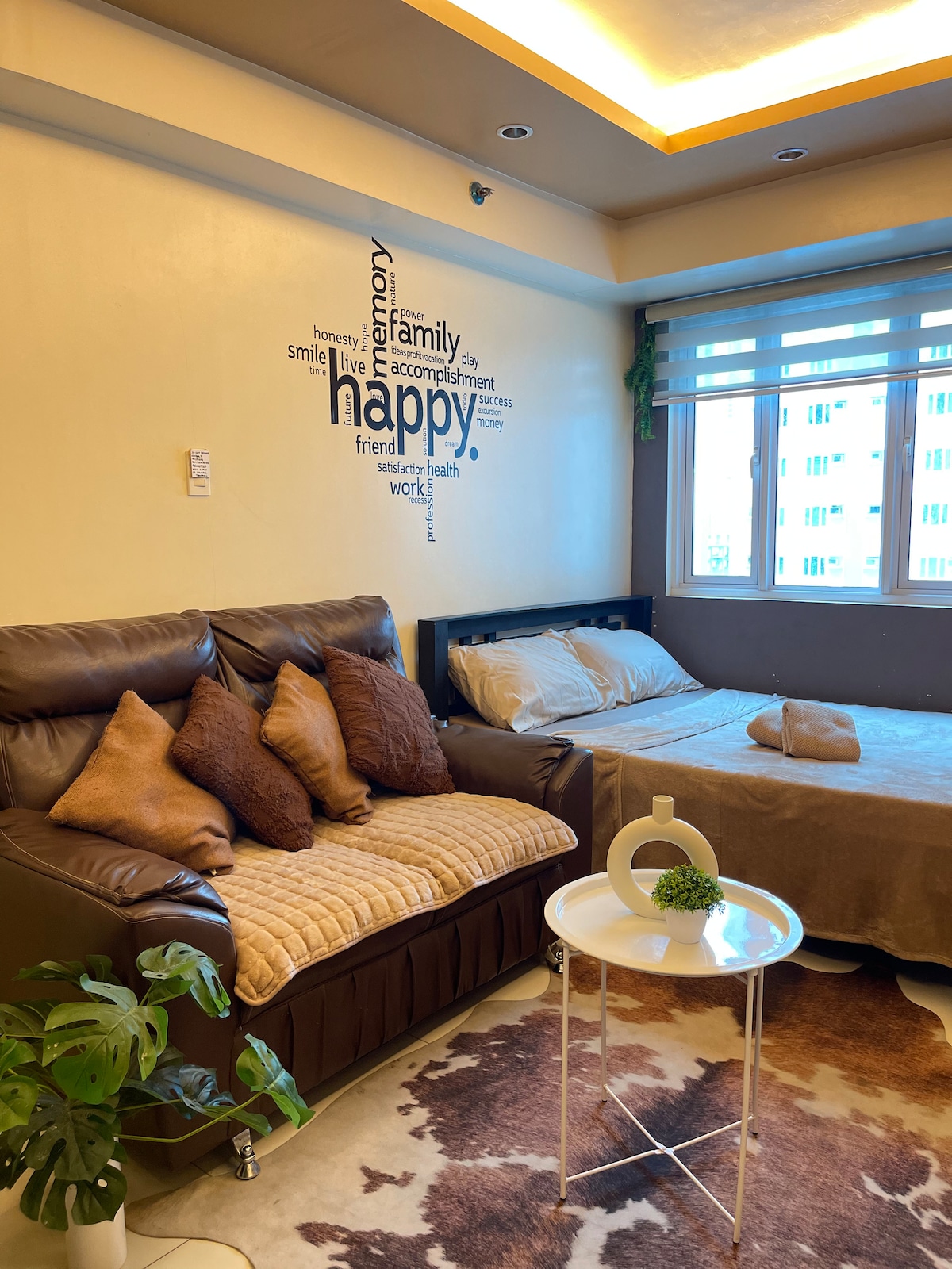 Ang aking lugar ay napaka - kumportable, kumportable, malinis, malinis at may kumpletong kagamitan na may mabilis na internet at handa nang mag - binge sa panonood ng iyong mga paboritong programa ng Netflix. Very relaxing ang unit ko at positive vibes. Tulad ng nakikita mo sa mga larawan halos ng aking dekorasyon sa dingding ay mga inspirational quote. Bottom line kung naghahanap ka ng komportable, malinis, komportable at nakakarelaks na may kapanatagan ng isip. Ang lugar ko ay ang isa!!!