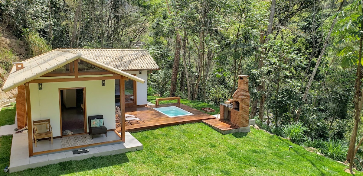 Welcome sa @nossocanto_serrarj. Tangkilikin ang kagandahan ng chale na ito, na eksklusibo sa tunog ng ilog, na kumpleto sa lahat ng aspeto, na may panloob at panlabas na fireplace, pool, barbecue, wifi, smart tv, bedding, washer at dryer machine at kahit na isang mabituin na kalangitan para sa mga gabi ng mas malinis na kalangitan.
