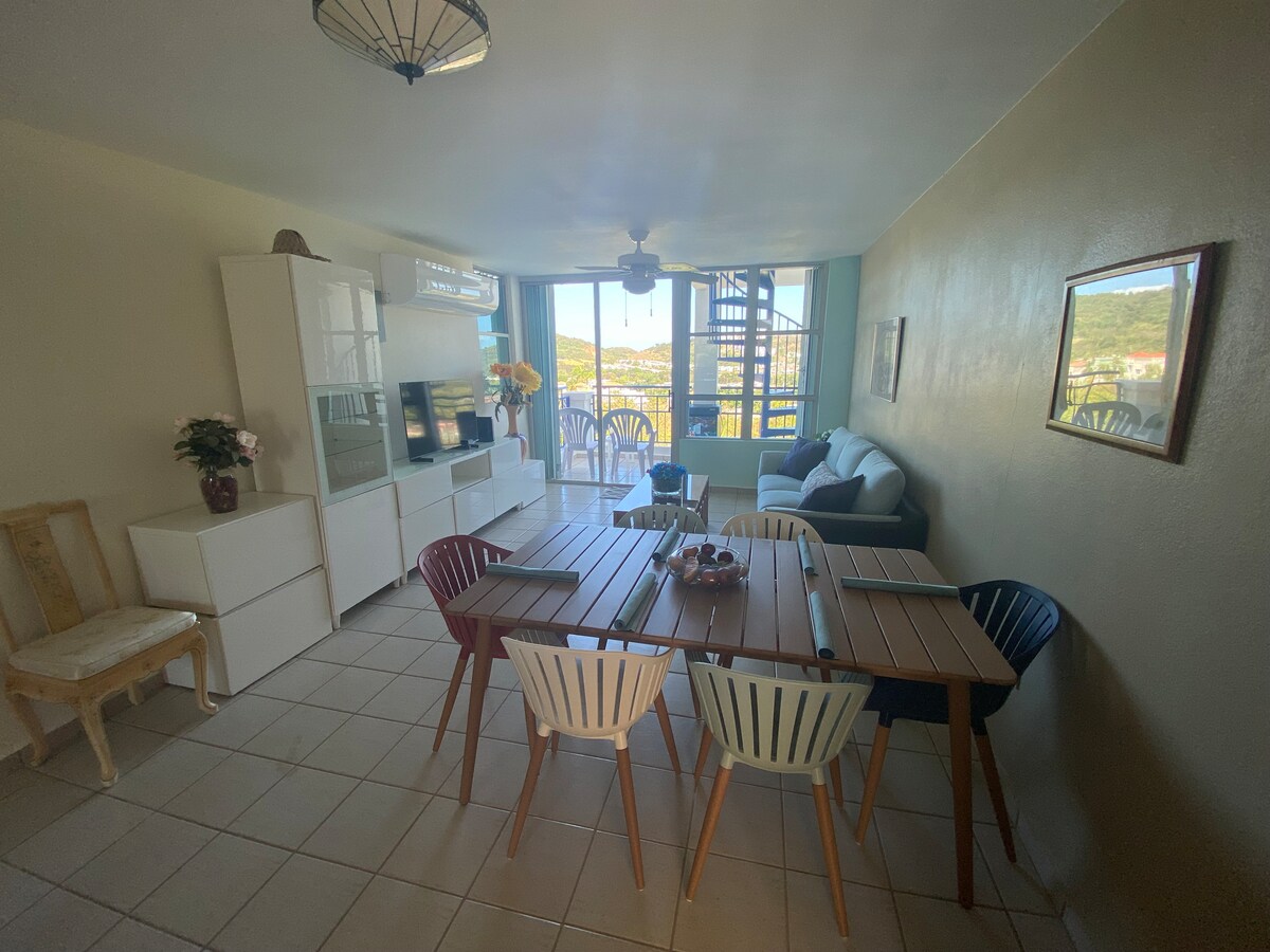 Magsaya kasama ng buong pamilya sa cool na penthouse na ito. Isang 3 kuwarto at 2 banyong apartment na may balkonahe at pribadong terrace na may mga tanawin ng beach. Matatagpuan sa gitna malapit sa magagandang beach, kaaya - ayang restawran at magagandang tanawin. 5 minuto ang layo mula sa pinakamalaking Marina sa Caribbean: Safe Harbor Puerto Del Rey. 12 minuto rin ang layo mula sa ferry na maaari mong gawin upang bisitahin ang Vieques o Culebra. 25 minuto sa Seven Seas at Las Croabas. Isang click lang ang layo mo para masiyahan sa bakasyunang nararapat sa iyo.