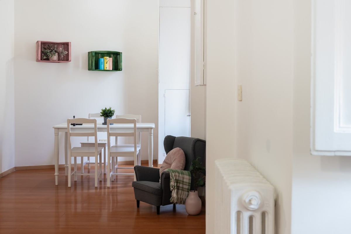 Komportable at komportableng bahay. Napakahusay na lokasyon, sentral ngunit tahimik, sa isang eleganteng at residensyal na kapitbahayan. Matatagpuan ito sa ikalawang palapag na may elevator, may malaking sala, double bedroom, kumpletong kusina, at banyong may shower. Napakahusay na koneksyon sa pampublikong transportasyon. Pambansang Code ng Pagkakakilanlan (CIN) IT058091C2RFPODAEG CIR 058091 - LOC -18107