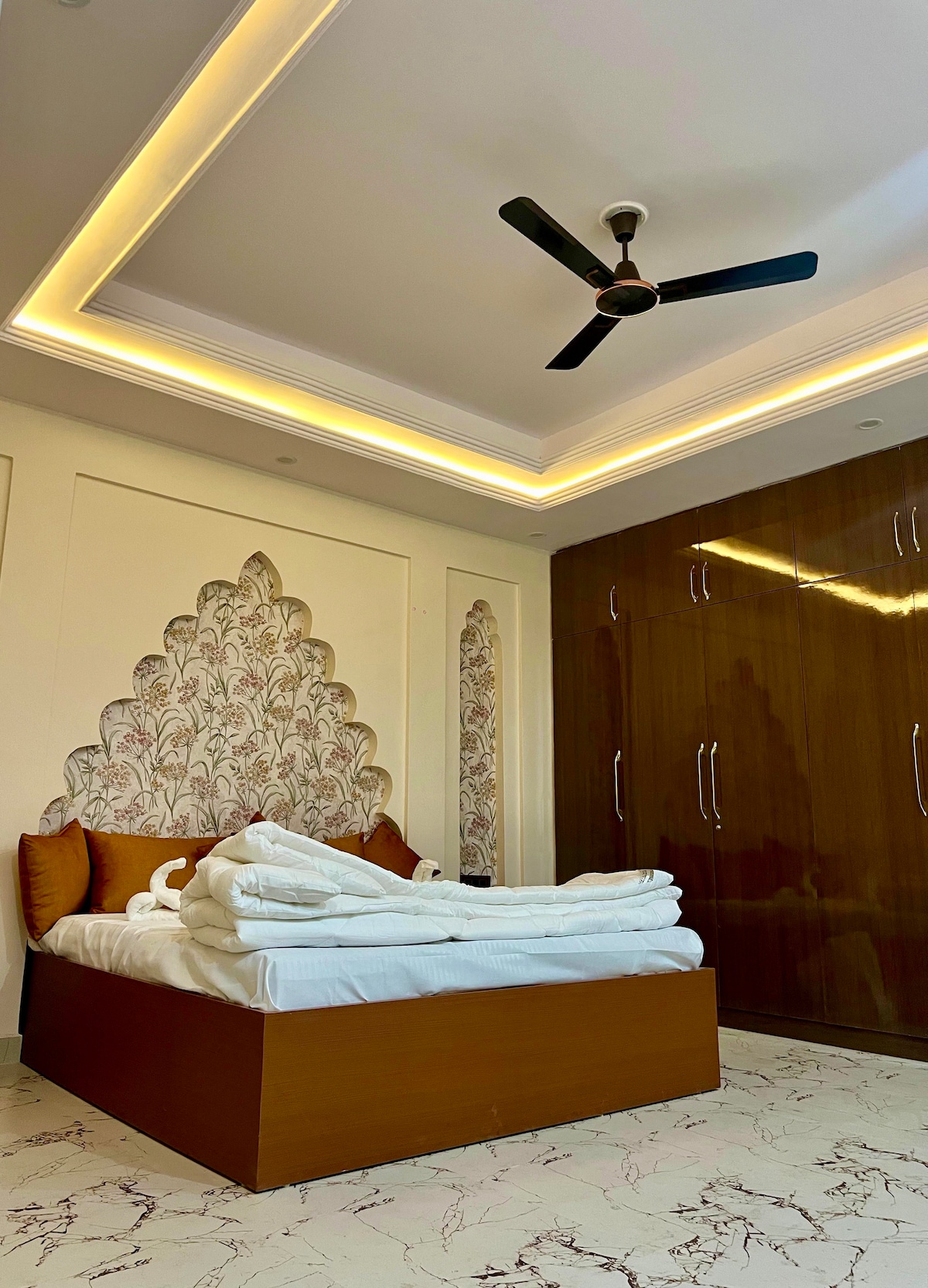 Isang Mararangyang Architectural Retreat sa Sentro ng Indore Ang nakamamanghang 8,500 talampakang kuwadrado na bungalow na ito ay isang pagsasama - sama ng modernong pagiging sopistikado at walang hanggang kagandahan, na idinisenyo ng mga host na mga kilalang arkitekto. Nag - aalok ang bungalow ng madaling access sa mga makulay na merkado at landmark ng Indore. Mayroon itong apat na maluwang na silid - tulugan na may mga nakakonektang banyo. Kasama sa mga tuluyan ang komportableng sala, pormal na silid - upuan at kusina, Hardin, 2,000 talampakang kuwadrado na balkonahe na nag - aalok ng perpektong lugar para sa mga tanawin ng paglubog ng araw, o pagniningning.