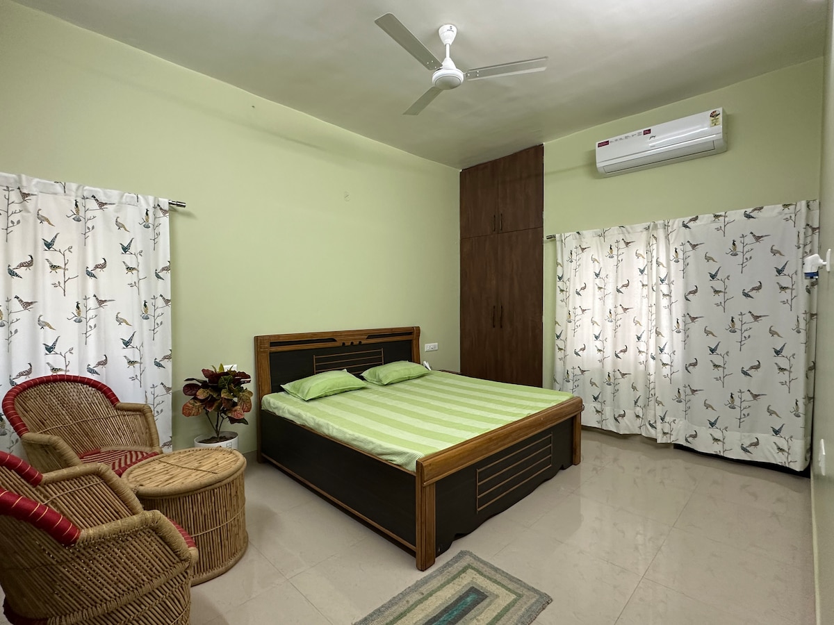 Sala: TV (Netflix at Amazon Prime) 5 X Seater Sofa 3 X Coffee Table 6 na seater Dining Table Kusina: Microwave Refrigerator Water RO Modular na Kusina Mga Amenidad sa Kusina Bread Toaster Silid - tulugan sa Itaas: Mga dobleng higaan na may mga side table Window AC 1 x WiFi Silid - tulugan sa Ibaba: Mga queen bed na may mga side table Kuwartong hindi AC 1 x WiFi Mga Banyo: 2 x Geysers Ekstrang: Rack ng Sapatos Mga tagahanga at Tube - light sa lahat ng kuwarto at banyo Mga salamin sa banyo at silid - tulugan