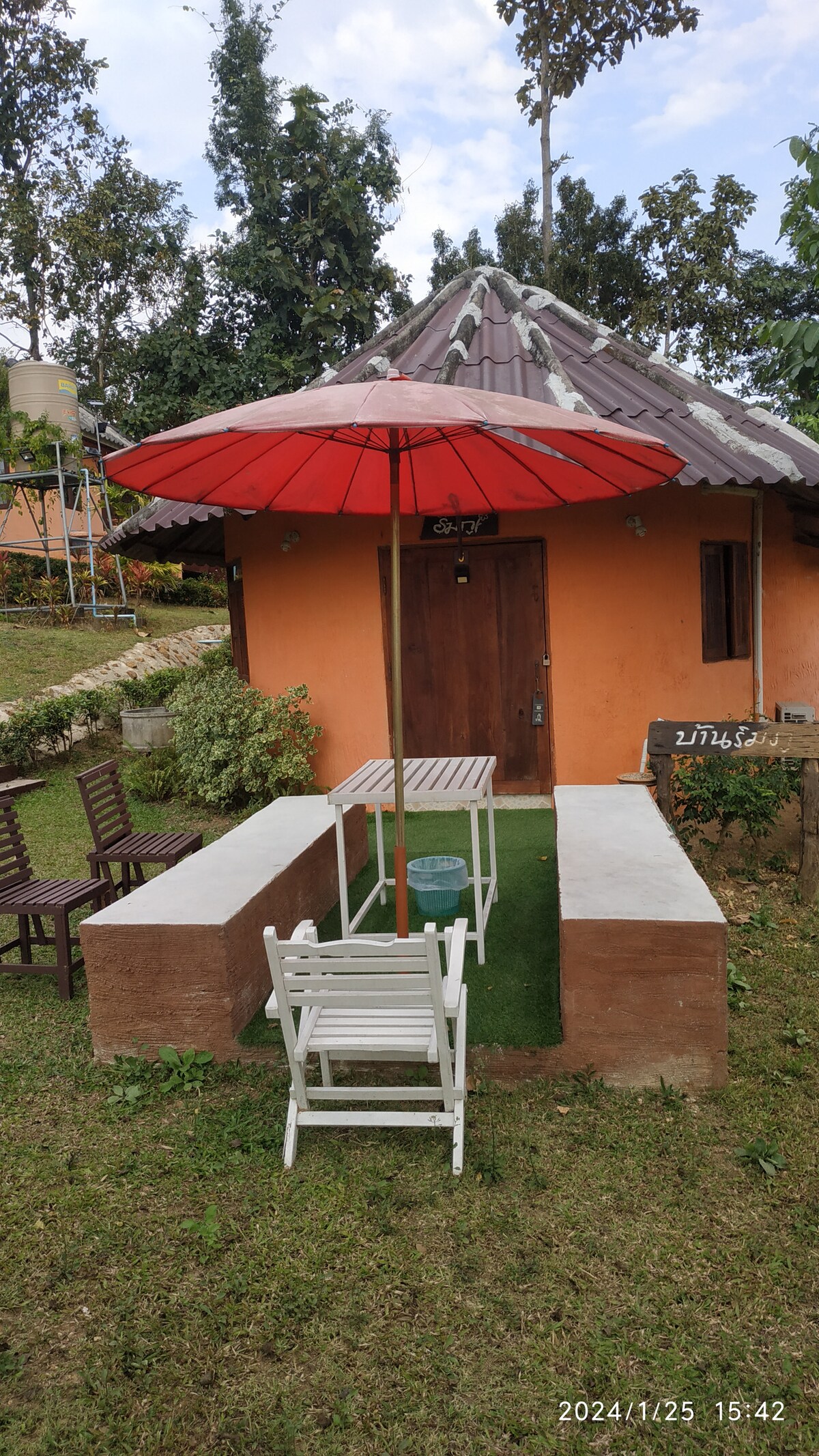 2*2 with a balcony and pantry. แม้บ้านนี้จะไม่ได้อยู่ในกลุ่มบ้านที่ให้พำนัก แต่อยู่ห่างไม่เกิน50 เมตร อยู่ติดกับลำธาร ให้ความเป็นส่วนตัว ห้องนี้อยู่ที่ชั้น 1 ห่างจากที่จอดรถ10ก้าวไม่มีขั้นบันได ที่บ้านไม่มีอินเตอร์เน็ต แต่ผู้ใช้สัญญาณของ เอไอเอส สามารถใช้งานได้ดี หากเดินขึ้นไปที่วัดจะมีสัญญาณอินเตอร์เน็ตฟรีให้ใช้ได้ ไม่มีแอร์แต่มีพัดลมซึ่งไม่ค่อยได้ใช้ ไม่มีมุ้งลวด แต่ไม่มียุงทั้งหมู่บ้าน เวลานอนมักปิดหน้าต่าง เพื่อป้องกันความหนาว แสงไฟสว่างทั่ว