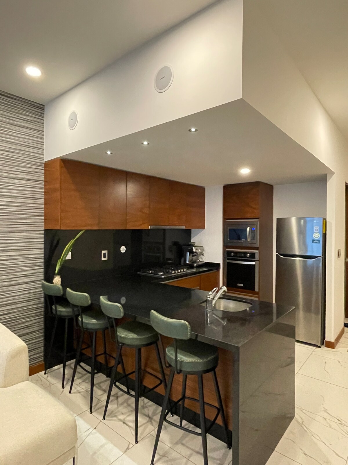 May 2 kuwarto ang apartment, 1 double at single na may dalawang single bed. 2 full bathroom, malaking dining room, kusinang may kagamitan, working area, at WiFi. 24 na oras na pagbabantay, 1 paradahan at elevator. Napakapayapa ng lugar. Nasa magandang lugar ito, ilang hakbang lang mula sa mga ospital at commercial plaza tulad ng Hospital de Pemex, Hospital Ángeles Pedregal, at Plaza Artz Pedregal.