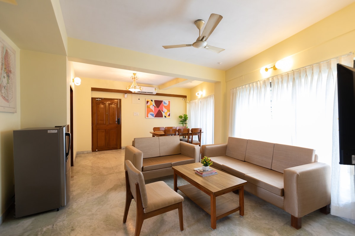 Welcome sa maganda at komportableng Airbnb na ito sa kaakit‑akit na residensyal na kapitbahayan sa Garia Park. Nag‑iisang pag‑check in gamit ang smartlock, nasa ika‑3 palapag ng property sa T‑point. May maayos na bentilasyon at maaliwalas na may maliit na kapitbahayan na nakaharap sa balkonahe. Tandaan: WALANG elevator Mga amenidad: High speed wifi, refrigerator, AC, workstation, air purifier, Geyser, microwave, induction stove, washing machine Madaling makakapunta sa lahat ng uri ng transportasyon at malapit sa mga restawran. Uber, Ola, swiggy, zomato lahat ay naghahatid