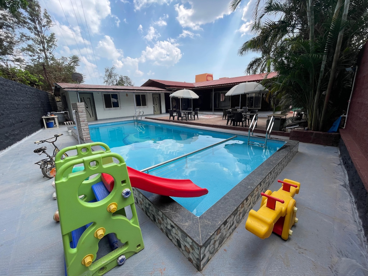 Nakakapagpahinga at nakakapagpahinga ang aming maaliwalas na cottage sa tabi ng lawa. Magising nang may nakamamanghang tanawin ng lawa, lumangoy sa pribadong pool, o magrelaks sa komportableng cottage. Narito ang lahat ng kailangan mo para sa nakakarelaks na bakasyon. Sapat ang laki para sa 6 na bisita. Madaling puntahan mula sa Pune at Mumbai sa pamamagitan ng kalsada o tren, kaya mas marami kang oras para sa tanawin. Kapag nagutom ka, mag‑enjoy sa masasarap na pagkaing parang lutong‑bahay na inihanda ng mga lokal na babae at idinideliver sa cottage mo.