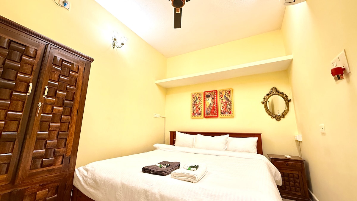 Masiyahan sa isang naka - istilong pamamalagi sa gitna ng Pondicherry, Ang lahat ng kailangan mo - mga beach, tindahan, at restawran - ay nasa loob ng 5 hanggang 10 minutong lakad. Malapit sa French Quarter, Promenade Beach, mga pamilihan, at mga palatandaan ng kultura. Komportable: High - speed na Wi - Fi, air conditioning, at kusinang kumpleto ang kagamitan. Gustong - gusto ang Disenyo at Kalinisan: Natutuwa ang mga bisita sa naka - istilong dekorasyon at walang dungis na tuluyan. Home Cinema: Masiyahan sa mga gabi ng pelikula na may projector at screen. Central loft - perpekto para sa pagrerelaks pagkatapos ng isang araw ng pagtuklas