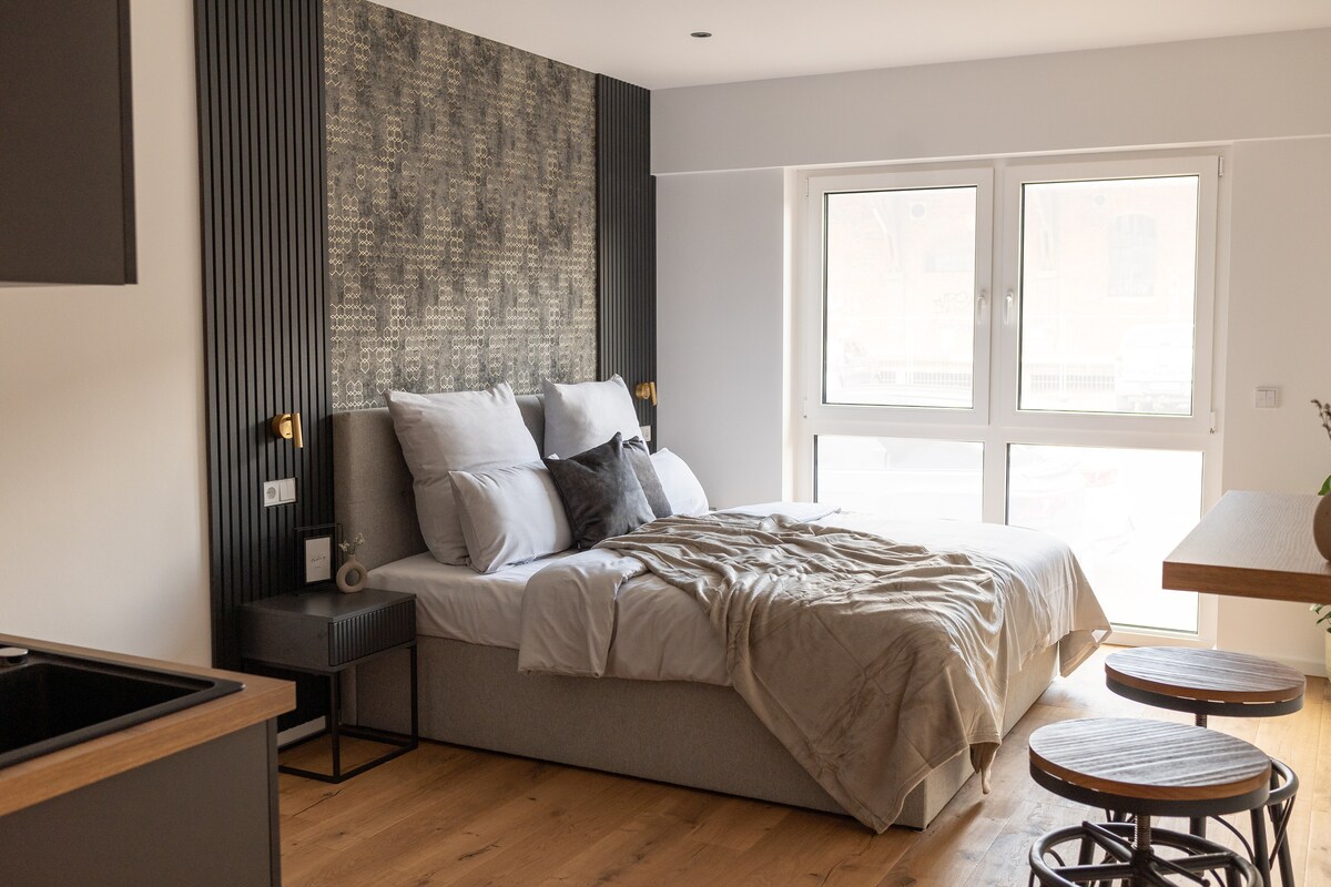 Welcome to BRIGHT in the center of Herzogenaurach! Our design studio apartments have everything you need for a nice stay: → King-size bed → Smart TV → NESPRESSO coffee → Kitchenette → Super centrally located, directly in the center of Herzogenaurach ☆"Everything very new, modern and tastefully furnished. Perfect and super central. Beautiful, large and very spacious rooms."