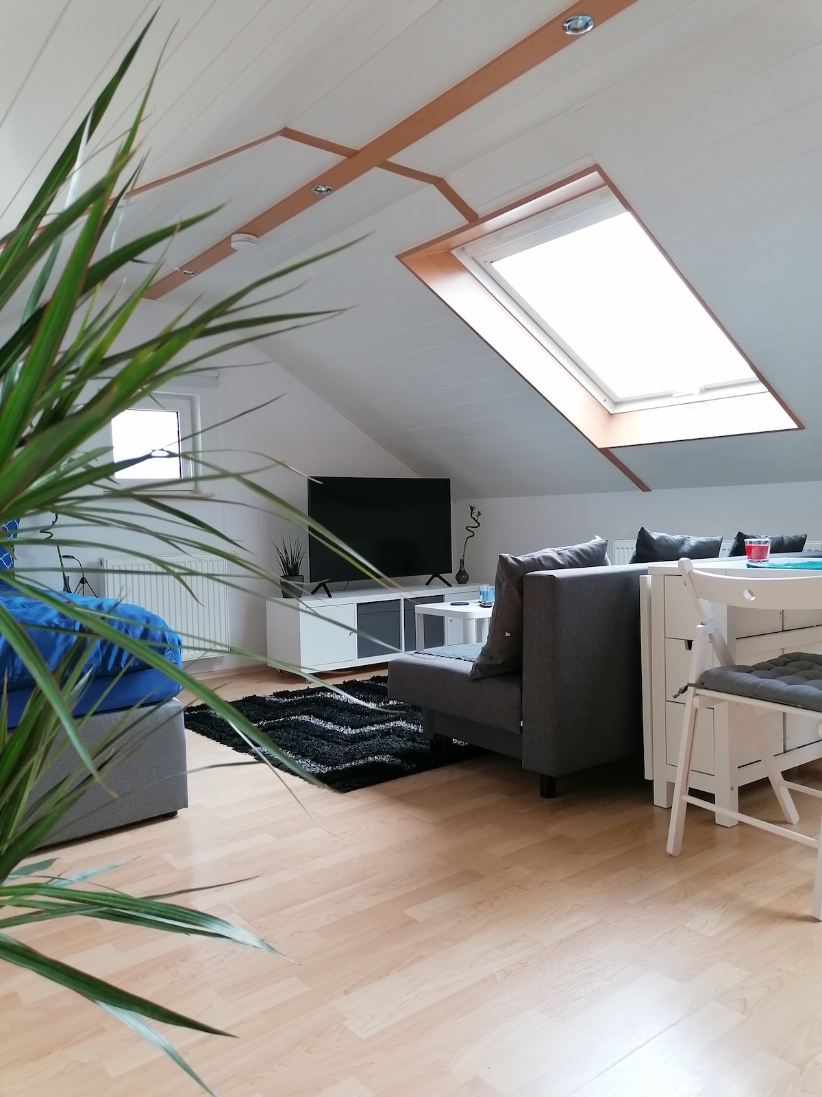 Newly renovated guest apartment in the former town hall of the village of Rohrbach, near Büdingen (Hesse). You will sleep in the former mayor's office. Quiet location, housing for up to 5 people. Carport next to the house. Idyllic village surroundings with many old timber framed buildings. The roofed patio surrounded with plants is perfect for a barbecue or to peacefully enjoy a cup of coffee.