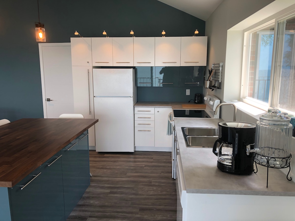 Tangkilikin ang mga kamangha - manghang tanawin ng lawa sa dalawang palapag na condo na ito na may access sa mga baybayin at isla ng Lake Erie. Mga tanawin ng pagsikat at paglubog ng araw. Ang condo ay may dalawang lugar para sa pagtatrabaho nang malayuan. Nag - aalok din kami ng highchair, travel crib at dalawang Roku TV. Bagong hurno at A/C. Bagong trundle bed sa itaas. Kasama sa berdeng espasyo ang mga Adirondack chair at fire pit para sa pag - ihaw ng mga marshmallows sa baybayin. Malapit sa Cedar Point Sports Center, Kalahari, Cedar Point Amusement Park, Jet Express, Huron Boat Basin at Nickel Plate Beach.