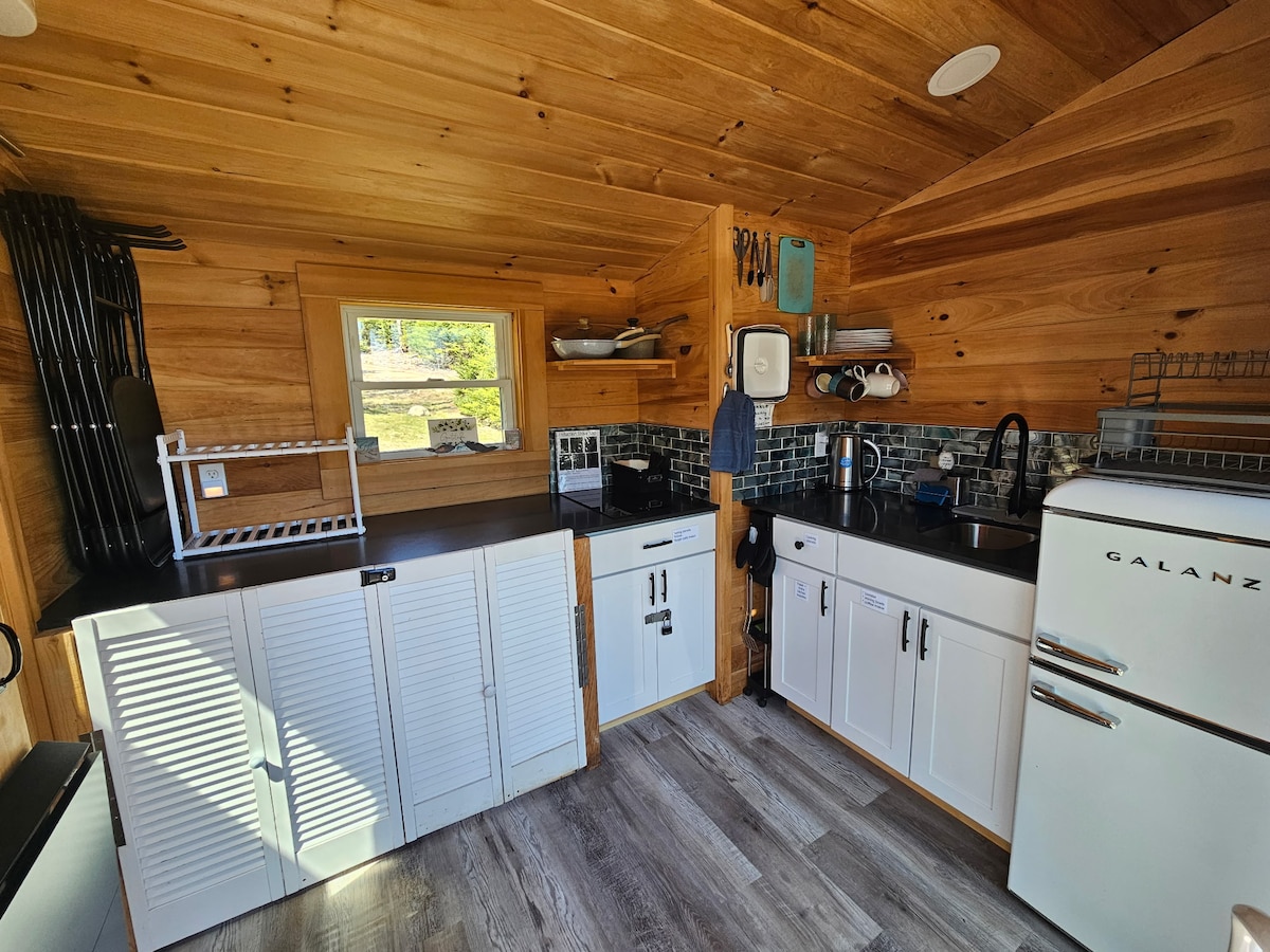 Pribadong dome sa lokasyon ng makasaysayang cannery. Sa tubig na may mga dramatikong tanawin ng Acadia National Park at Stave Island. Pinaghahatiang paliguan at shower na matatagpuan sa hiwalay na gusali. Maliit na kusina sa unit. Access sa waterfront picnic area na may gas grill. Kasama ang paggamit ng dalawang kayak. Mayroon kaming dalawang dome. Kung pareho kayong nangungupahan, may 10% diskuwento. Tandaan: Matatagpuan kami sa layong 4 na milya mula sa Schoodic Entrance ng Acadia National Park at sa downtown Winter Harbor.