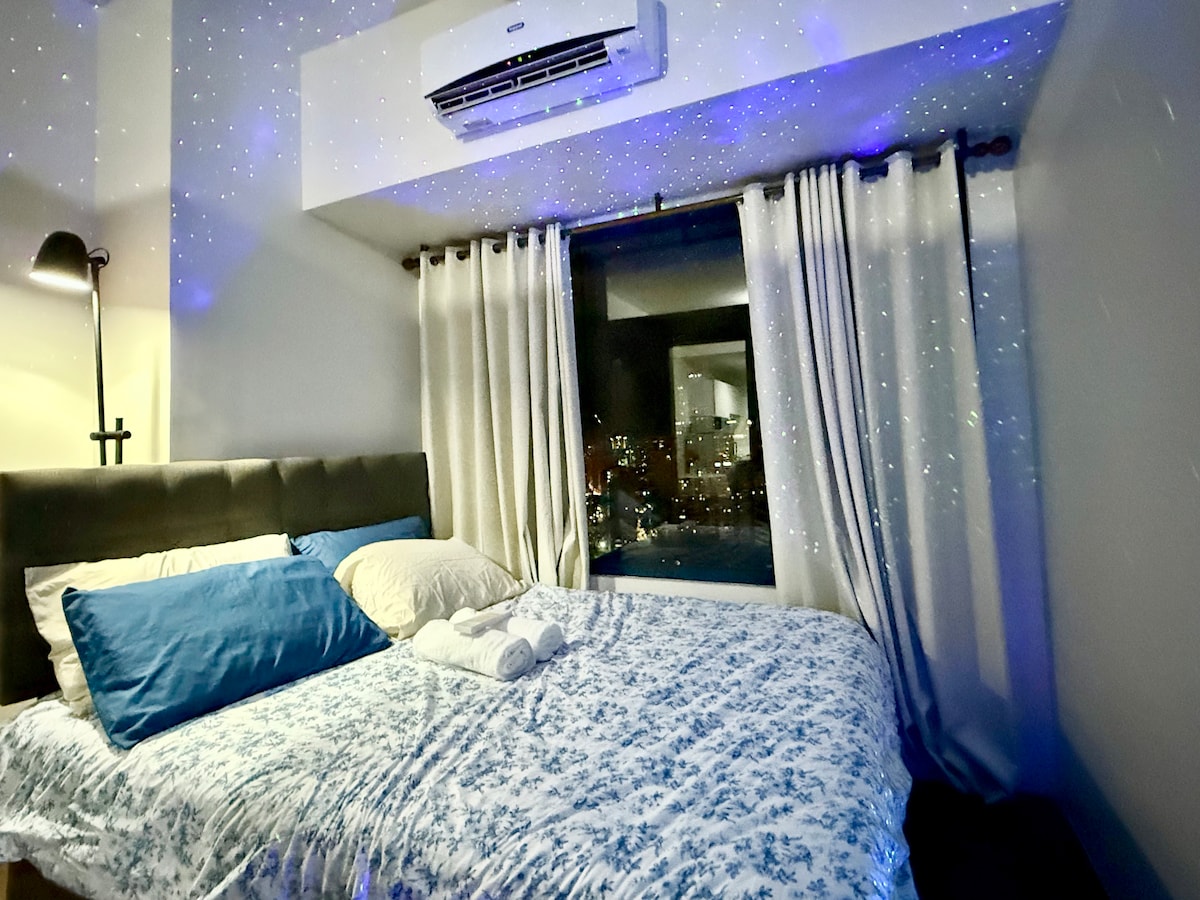 Cozy and relaxing unit located at 54th floor of Air Residences, Ayala Ave. extension corner malugay/yakal street in Makati CBD. The unit offers a magnificent view of Makati skyline. Commercial area is at the ground floor (1. Air Mall 2.The Rise:Assembly Grounds) for coffee, resto or grocery needs Close to skyway entrance/exit if you are going or coming from the airport. It has queen size bed with premium spring mattress for comfy sleep Check In: 2PM onwards Check Out: Before 11AM
